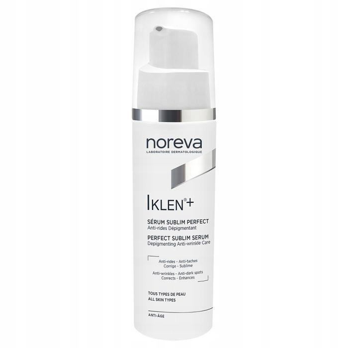 Рекомендується при фотостарінні шкіри, гормональних або реактивних змінах, рубцях, фотосенсибілізуючих препаратах.... Сироватка Noreva Iklen+ Anti-Dark Spot Corrector Serum 30ml з ніжною нежирною консистенцією, це ідеально підходить для корекції та відтінку плям, для зменшення зморшок і вирівнювання кольору обличчя, обличчя, рук і декольте.