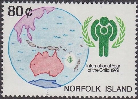 Norfolk 1979 Znaczek 233 ** dzieci Rok UNICEF mapa
