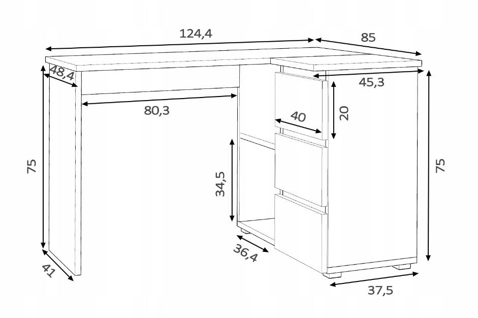 Стіл двосторонній, можна поставити спинкою всередину (*коротша сторона столу не закінчена за ящиками!)
