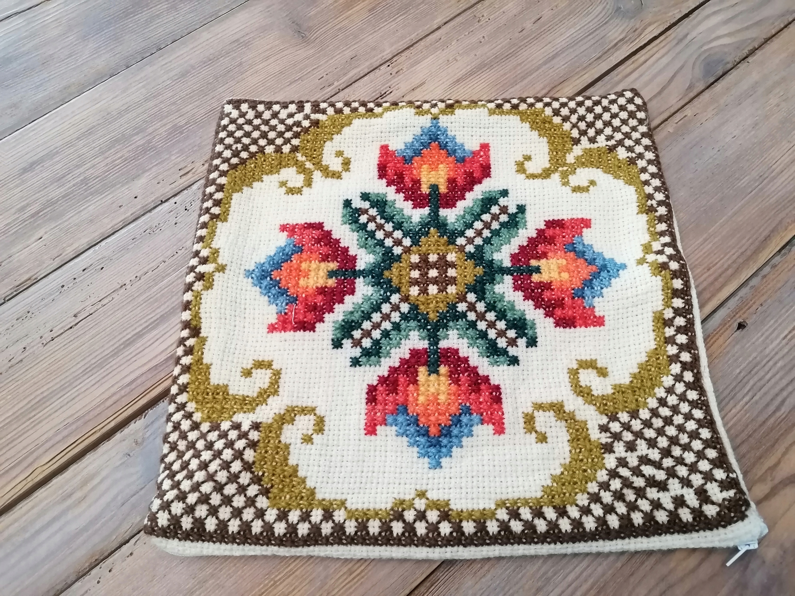NORWESKA HAFTOWANA KRZYŻYKIEM POSZEWKA PRACA RĘCZNA 34 x 34 nr.1