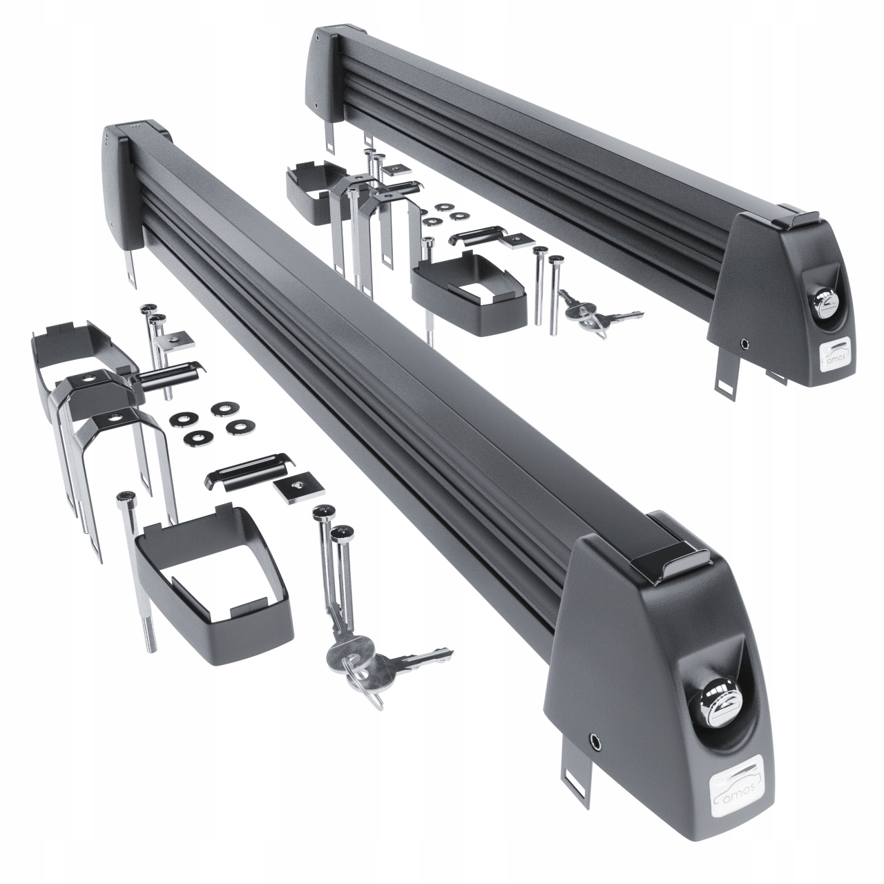 Кріплення для лиж/сноуборду в комплекті (2 шт.), 4 збільшувальних кубика (накладки), вкладиші для кріплення на алюмінієві балки з Т-профілем (4 шт.), 2 ключа, інші елементи кріплення.