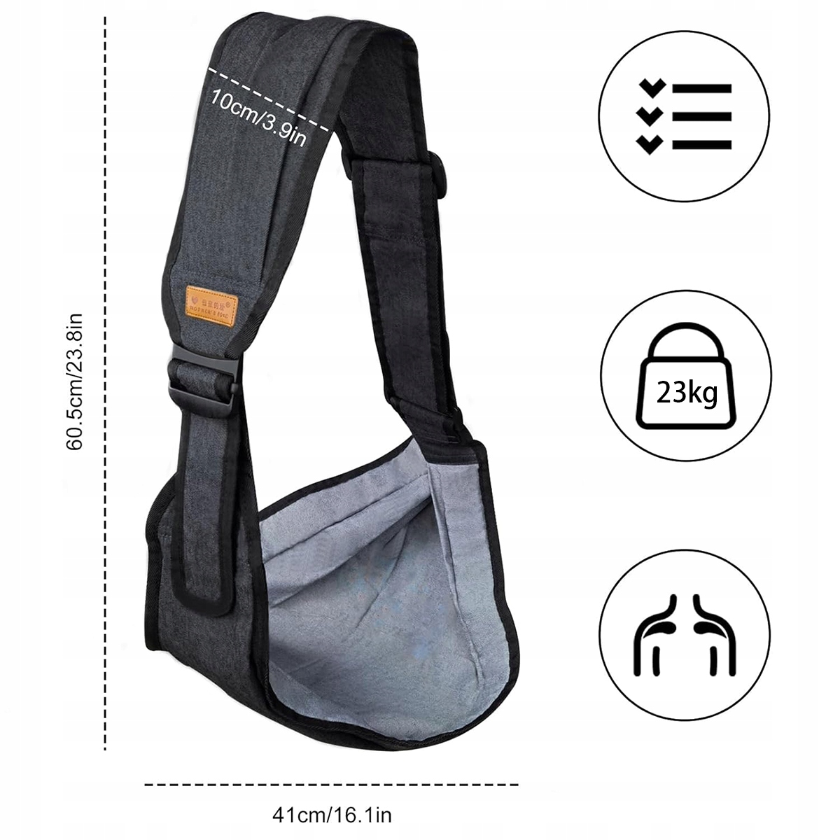 - М'який ремінь ефективно розподіляє тиск на спину, забезпечуючи більший комфорт для молодих мам. Загальна довжина ременів становить 152 см (60 дюймів), і їх можна відрегулювати на будь-яку довжину, яка підходить більшості батьків.