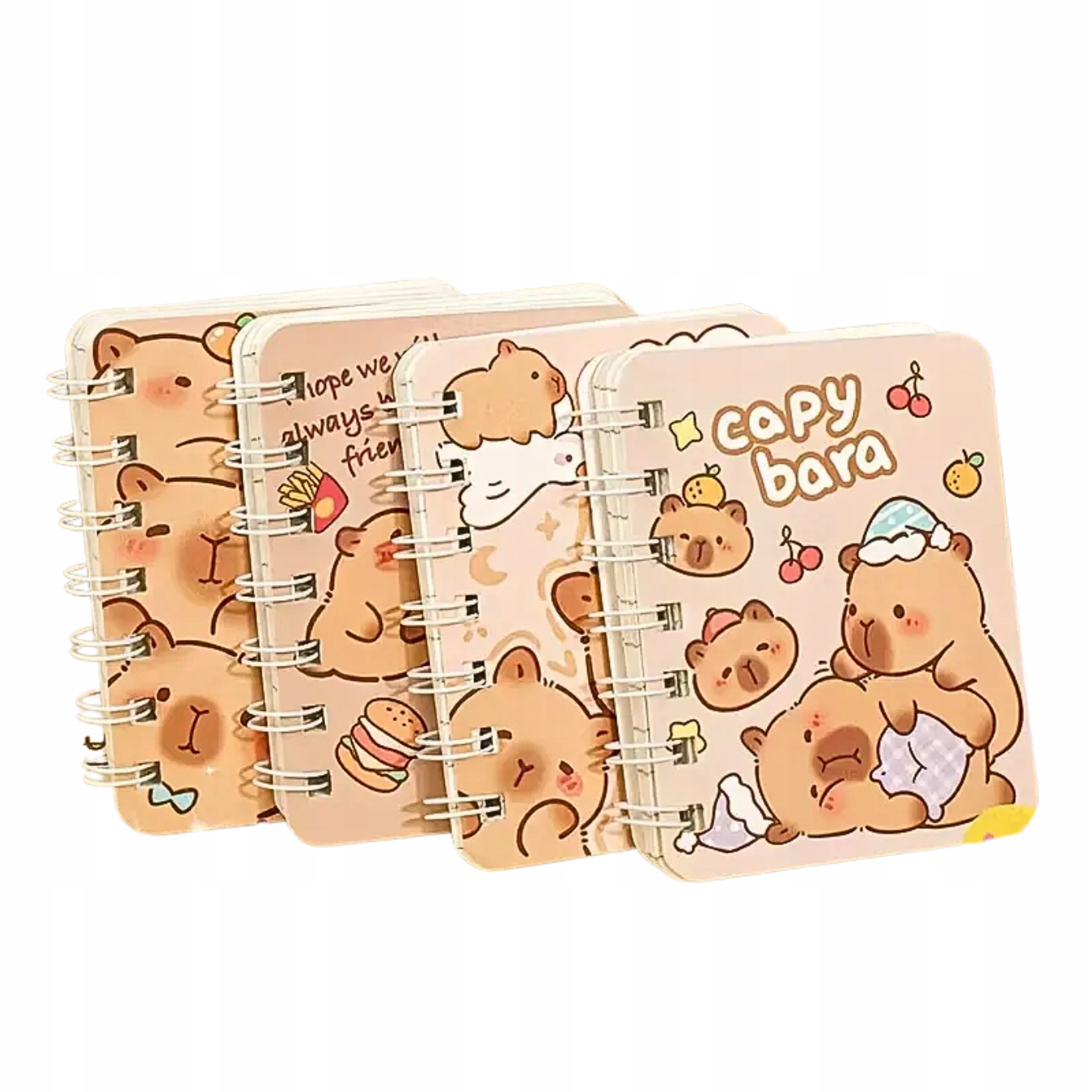 Встановіть 4 спіральні ноутбуки Kapibara - кожен ноутбук має різну обкладинку.