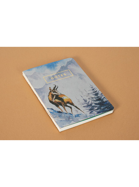 Обкладинка зошита з ілюстрацією гірського мотиву та написом із золотим тисненням чудово поєднується з натуральним картоном.