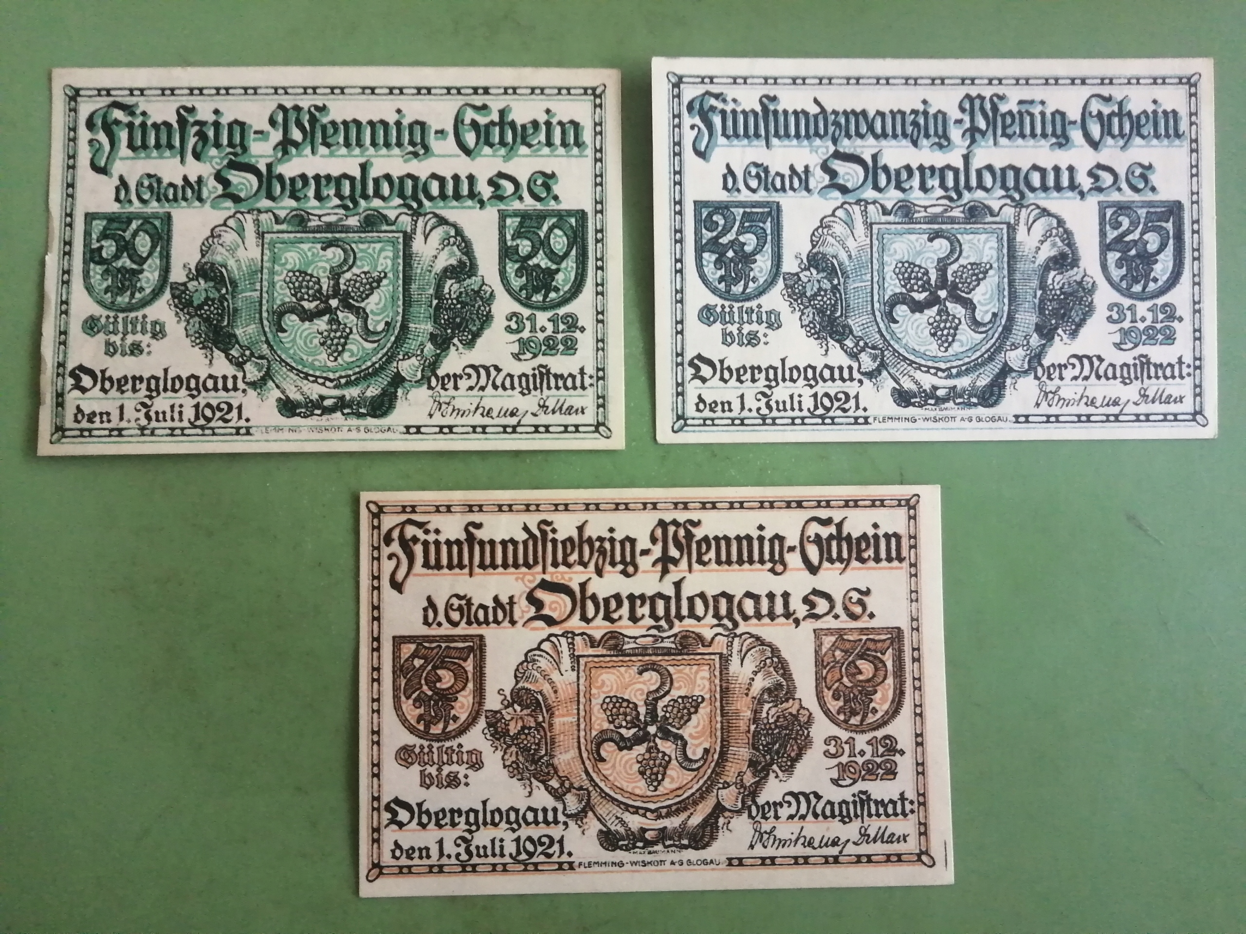 NOTGELD OBERGLOGAU (głogówek /dzierżoniów) 3 шт.