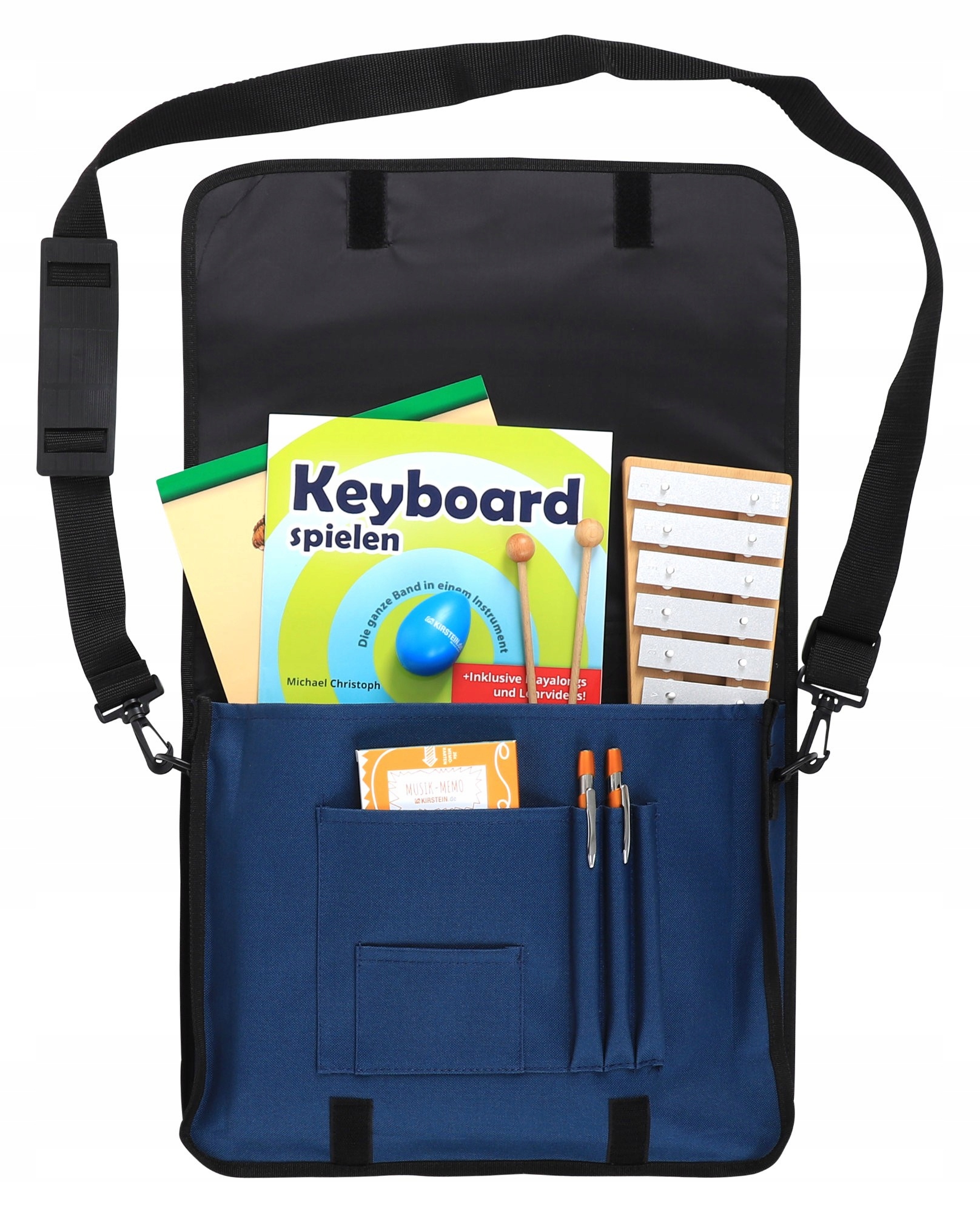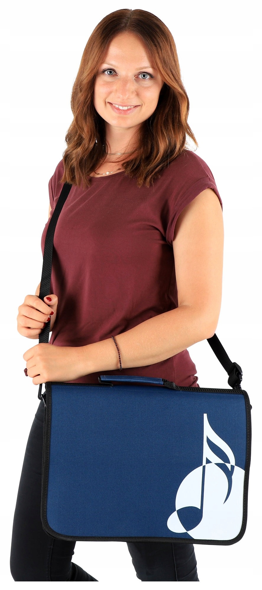Практична музична сумка з 2 відділеннями - велике відділення 15 х 15 см, мале відділення 9,5 х 7,5 см, сумка та знімний плечовий ремінь. Має внутрішні відділення для ручок та інших аксесуарів. Чудовий дизайн із білим мотивом шістнадцятої ноти, синій колір.