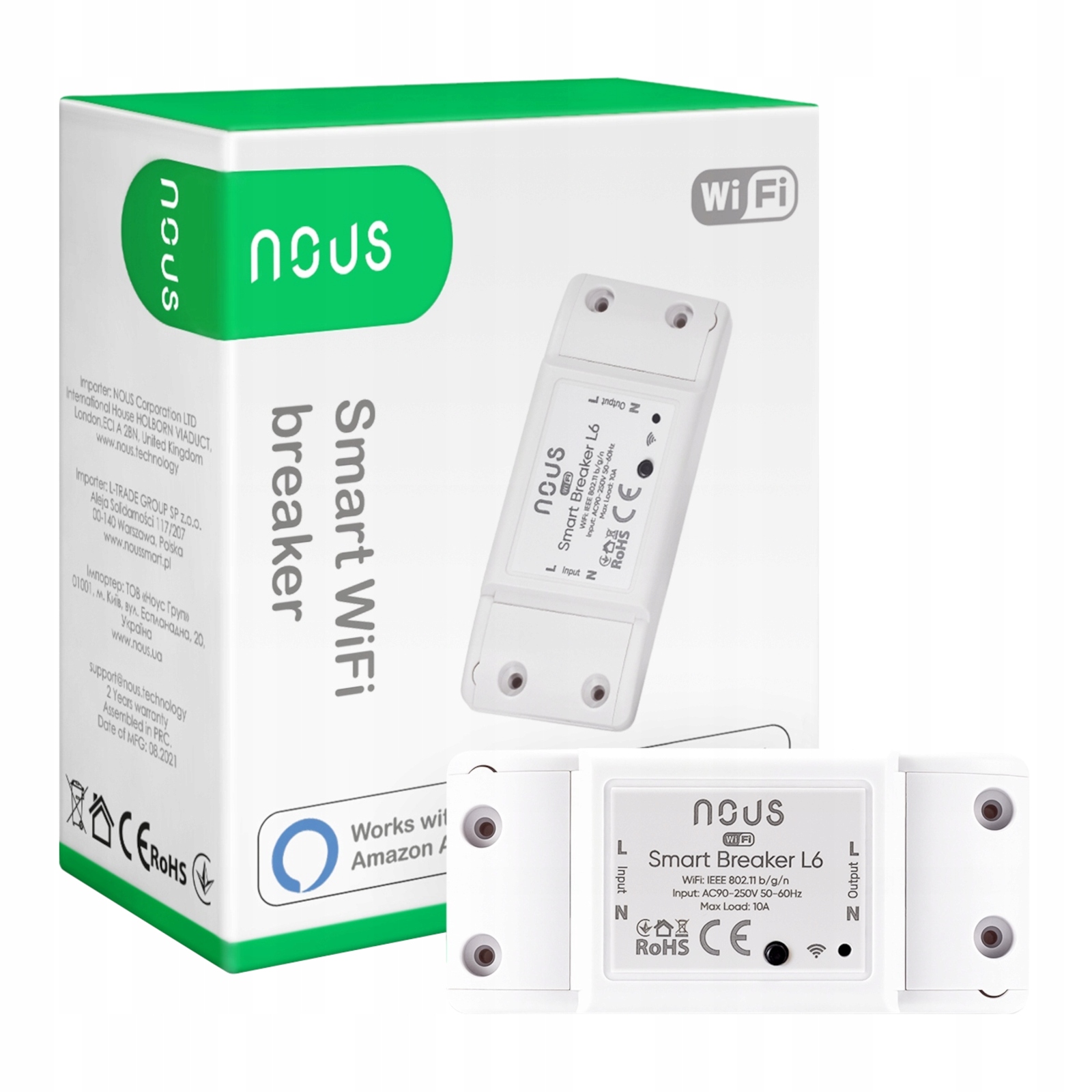 ⭐ nous l6 є універсальним реле WiFi зв’язок , що дозволяє інтелектуальний контроль пристроїв живлення з пристроями живлення з Пристрої напруги 230V . Сумісний з додатком nous smart Home , Google hom e та Amazon Alexa дозволяє віддалене управління , налаштування графіки та голосова служба .