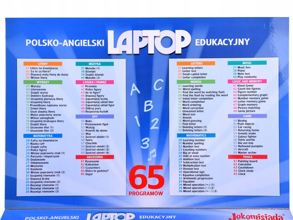 - Іграшка, оснащена65 функціямидозволить вам вивчати правила правопису польською та англійською мовами, математику, вирішувати прості завдання та грати в цікаві ігри. ul>
