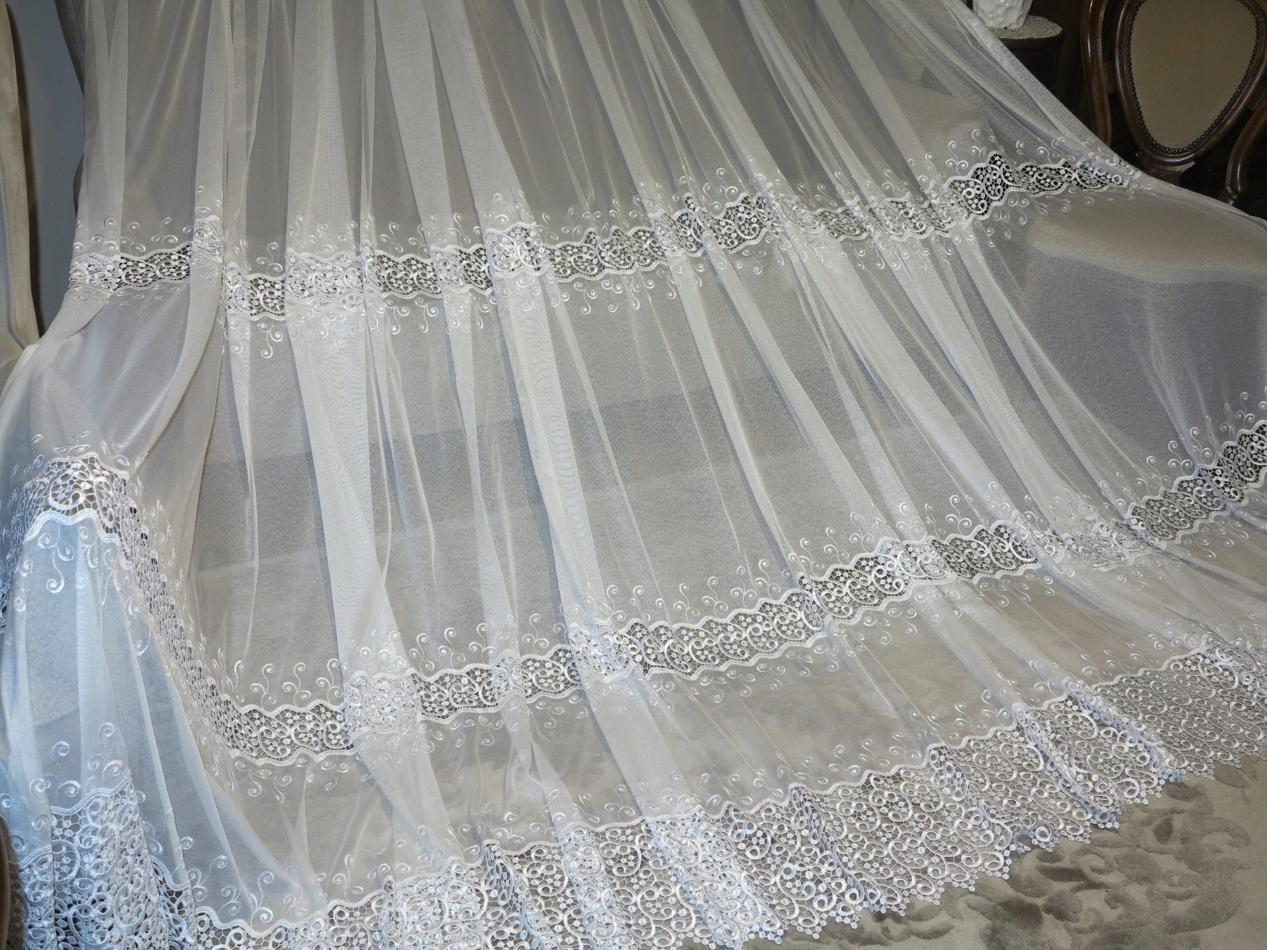 Предметом аукціону є гарна біла штора, насичена трьома рядами гіпюру та вишивкою. Тип штор - м'який маркізет. Завіса в реальності ще красивіша. На збиральній стрічці. Штора б/в, у відмінному стані та якість - нова. Рекомендую.