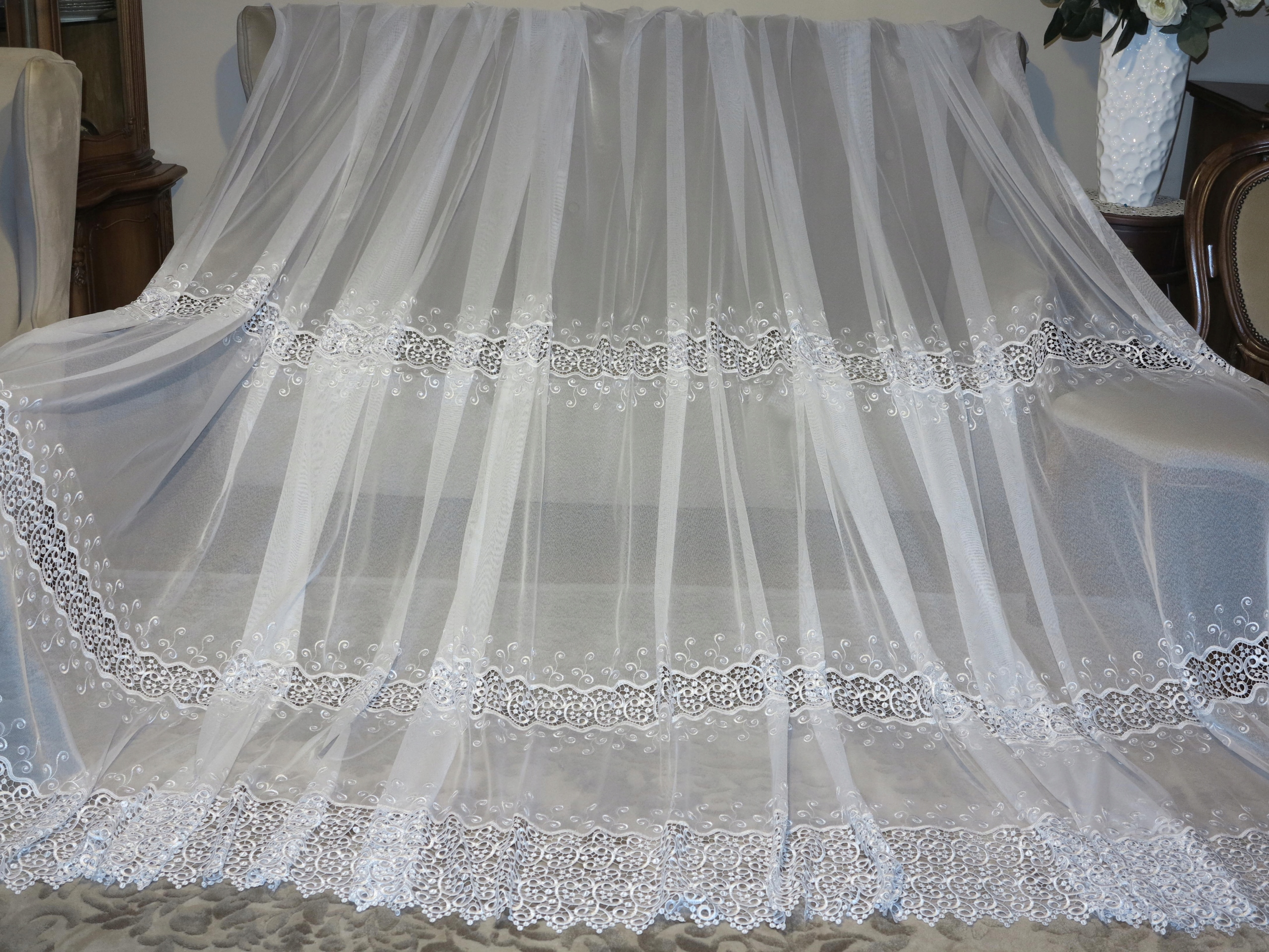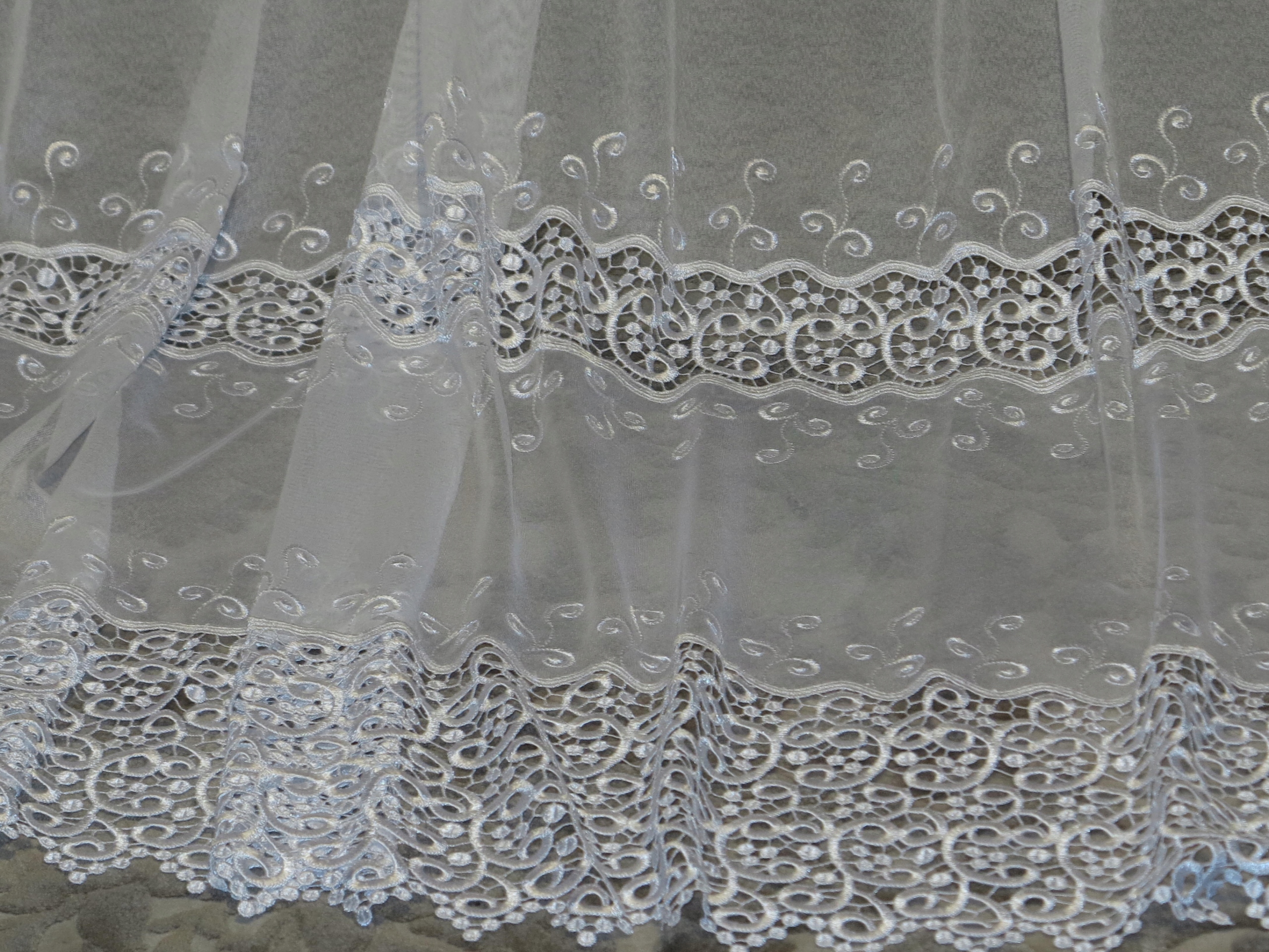 НОВА ЧУДОВА БІЛОСНІЖНА ШТОРА З ПЕРЛОВИМ ГІПЮРОМ І ВИШИВКОЮ 535/252
