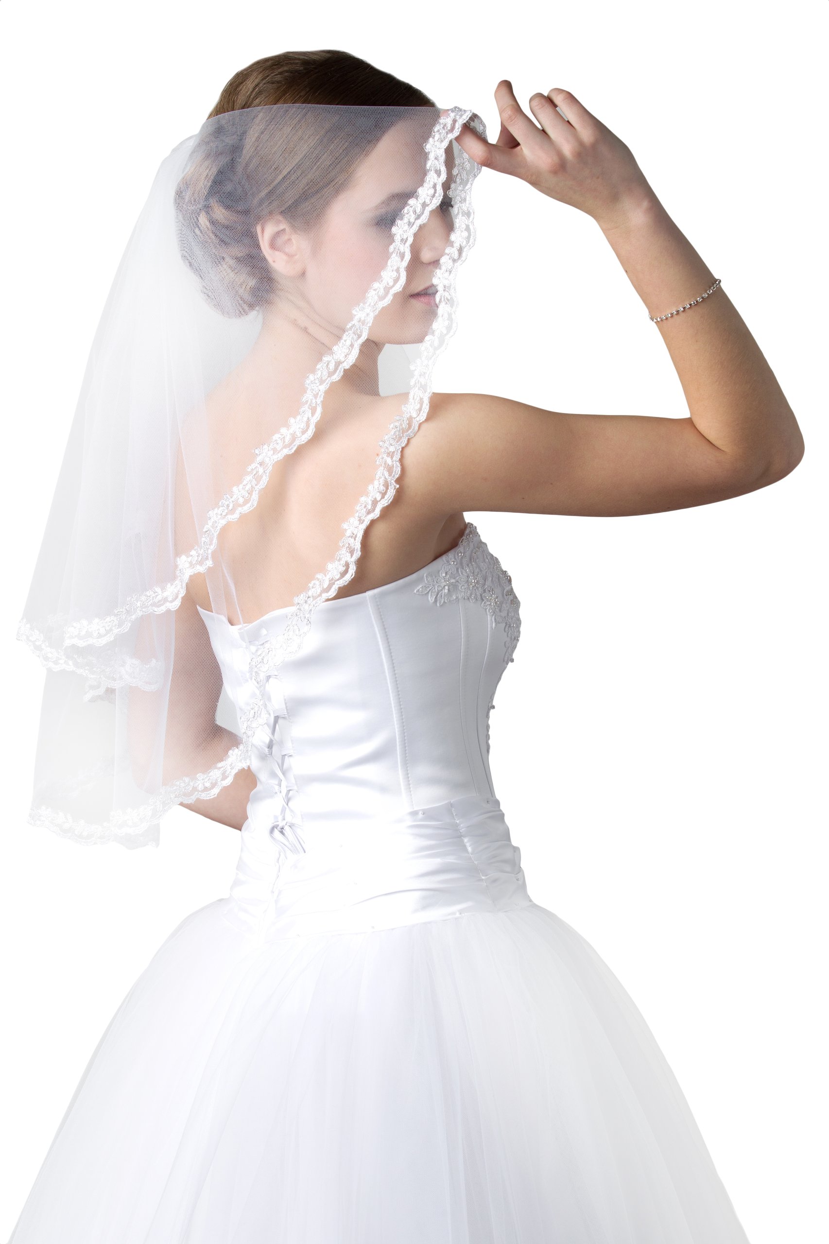 Ми пропонуємо вам прекрасну весільну завісу, зроблену з білого або тюлю Ecru. Завіса є подвійним шрифтом з розміром 50/60 см, обрізаний прекрасним мереживом. (Якщо ваша сукня не є сніговою, ми пропонуємо вибрати колір ECRU).