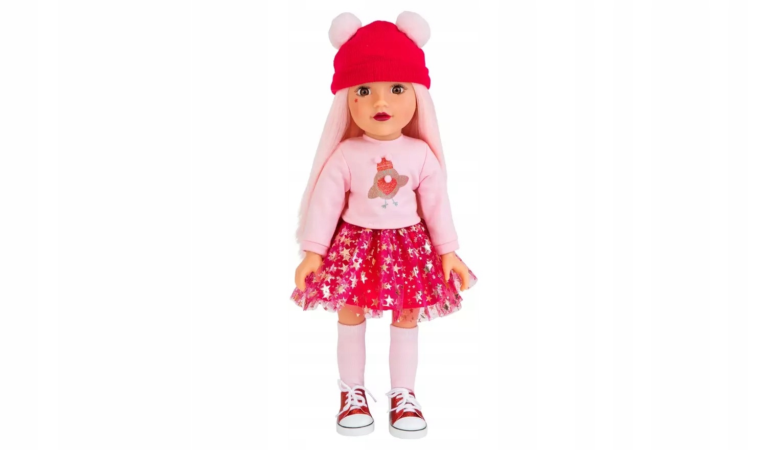 Її зріст 18 дюймів / 46 см, вона одягнена в рожеву толстовку з довгими рукавами та зображенням Робін, червону пачку із зірками рожевого золота, рожевими гольфами та спортивними черевиками з червоним блиском.