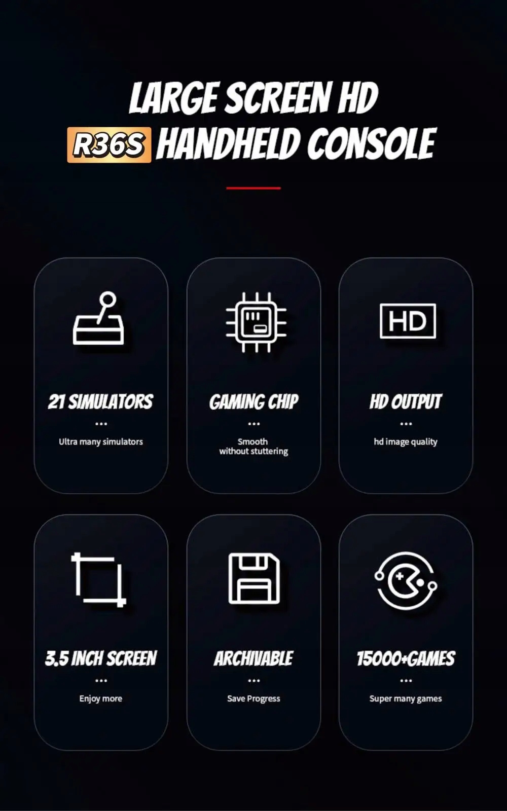 КПК R36S не лише пропонує вам найновіші ігри, але й оживляє класичні твори, які ви пам’ятаєте з дитинства. Освіжіть спогади та насолоджуйтесь улюбленими ретро-іграми, які викликають у вас ностальгію за старими часами. Кожна гра — це подорож у минуле, яка приносить радість і нагадує вам, чому ви закохалися у відеоігри.