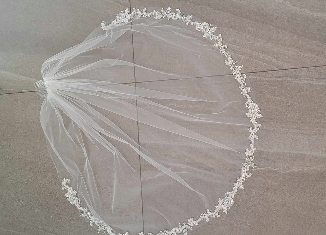 Нова прикрашена вуаль 85 см, колір слонової кістки, темно-сірий, бохо