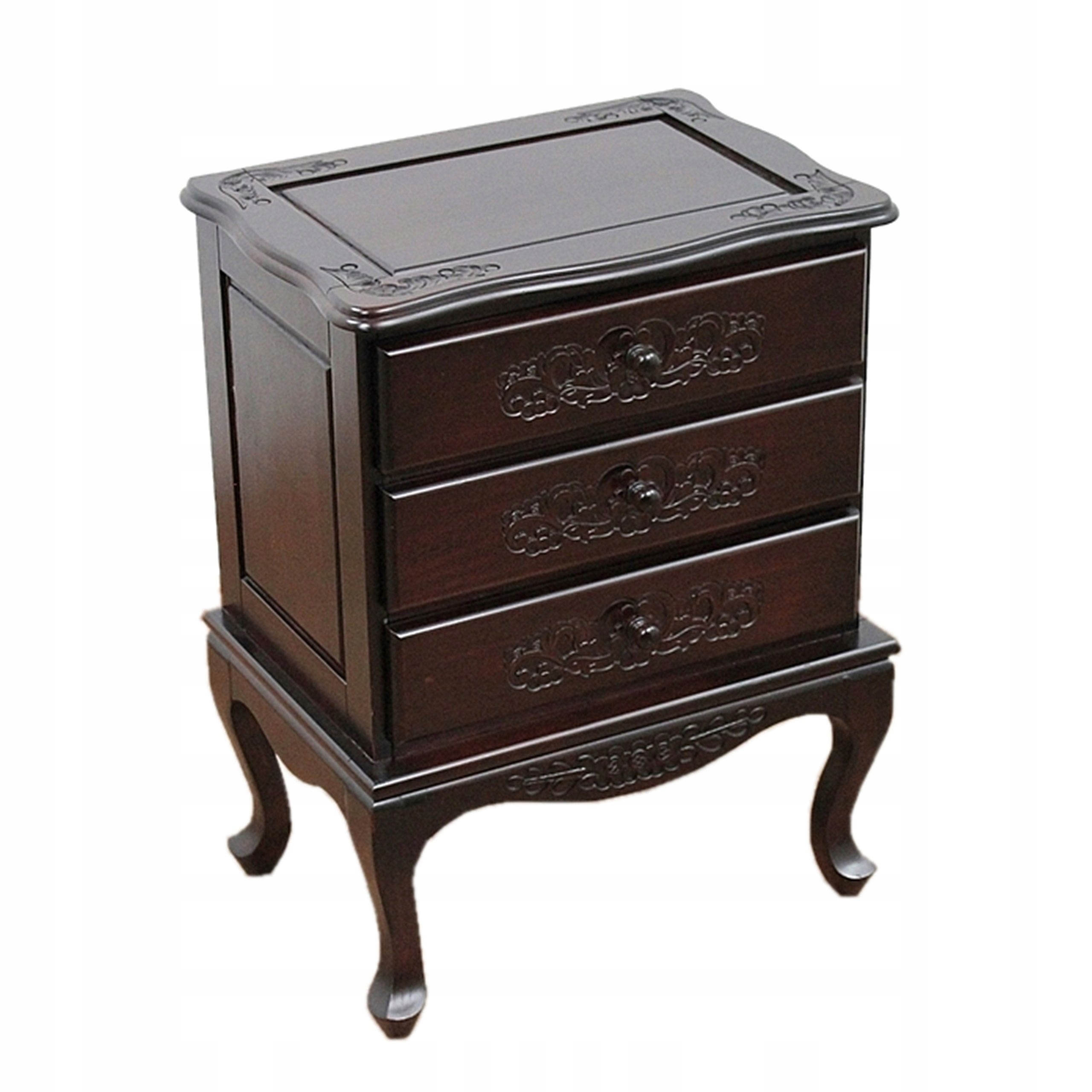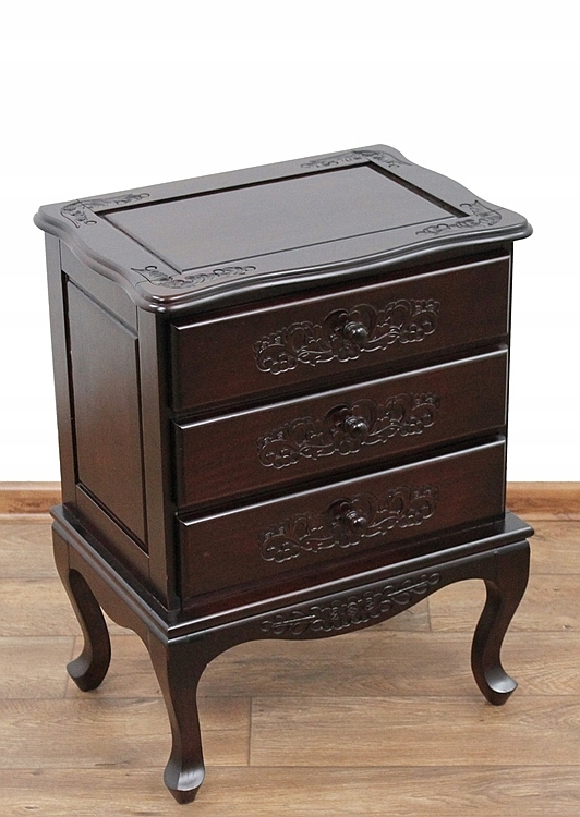 Чарівний предмет меблів із трьома шухлядами та красивим різьбленням.