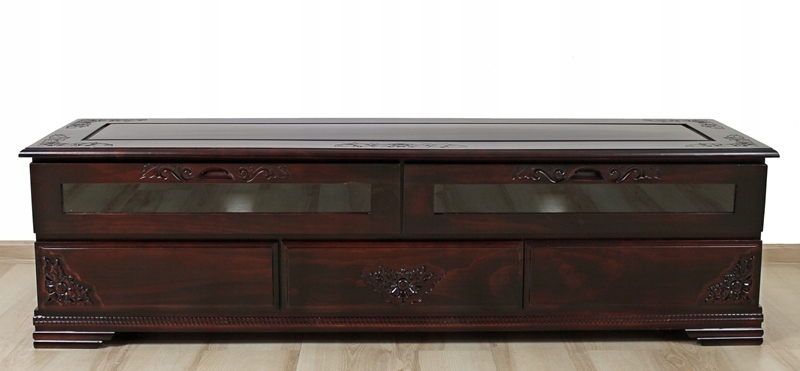 Запрошую придбати різьблену ТВ тумбу. Виготовлена з екзотичної деревини - похідної червоного дерева. Меблі дуже функціональні та практичні - мають три ящика та дві скляні шафи. Виглядає чудово.