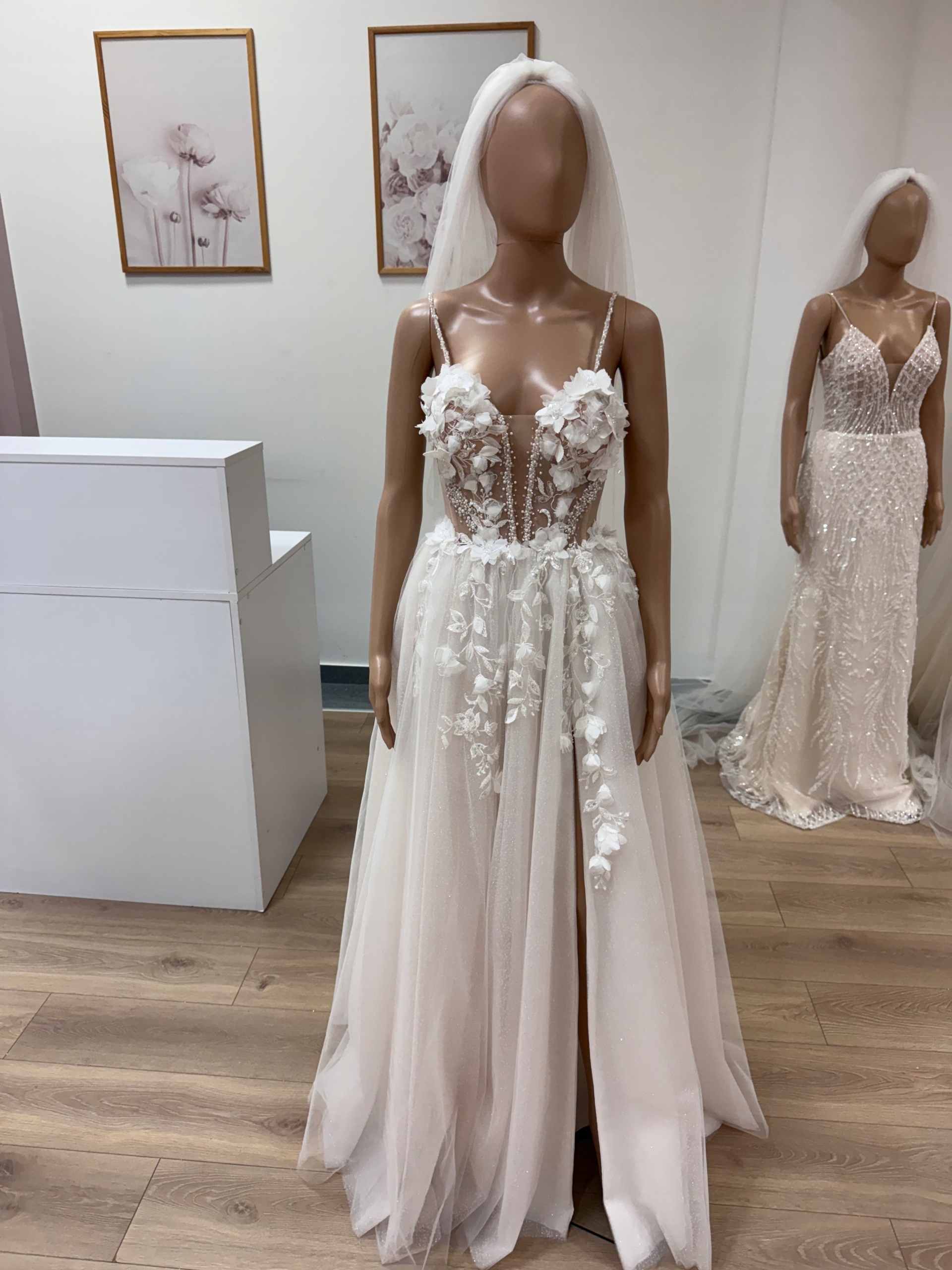 Нова весільна сукня з корсетами з блисками декольте з тюль -квіти 3d 34/36