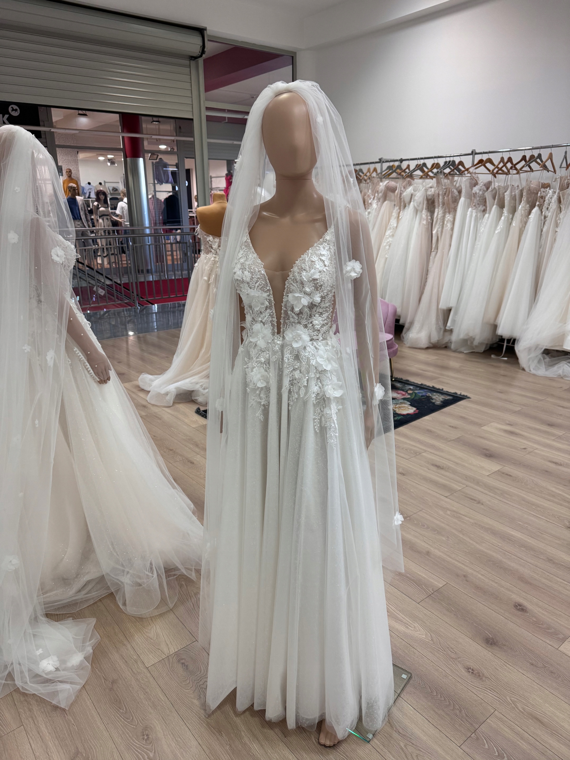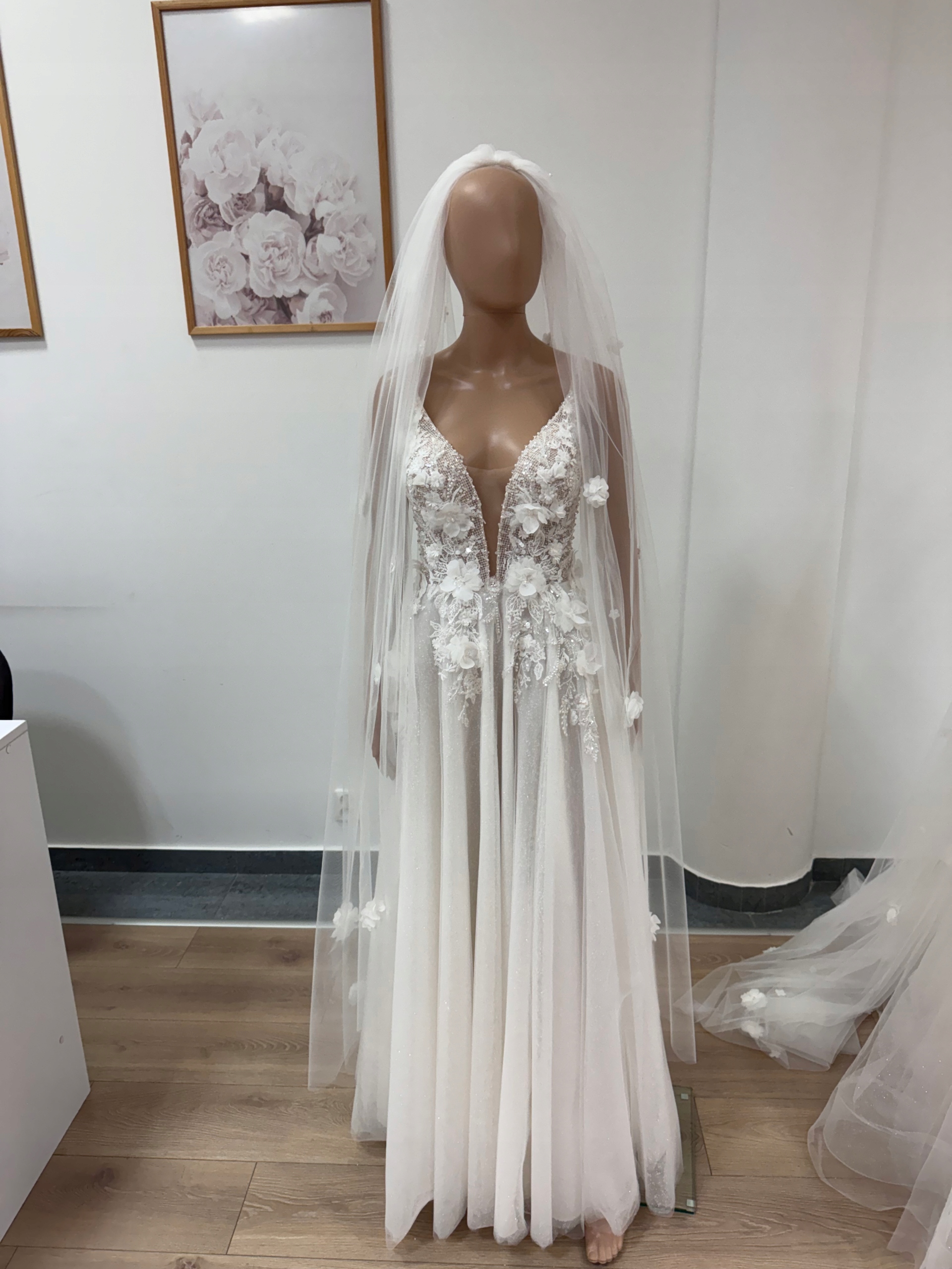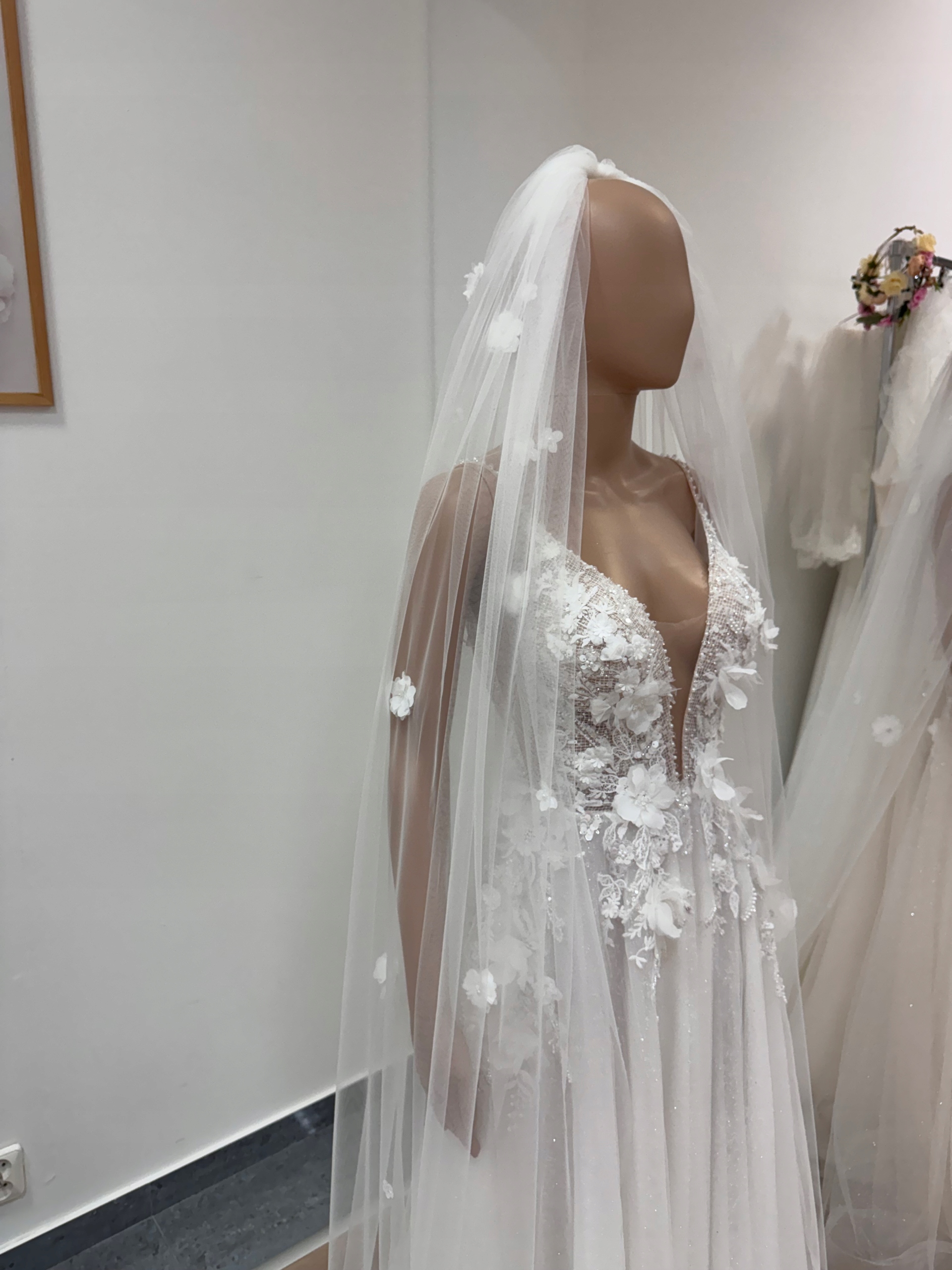 Нова вуаль з мереживними 3D квітами 180 см слонової кістки довгий до землі