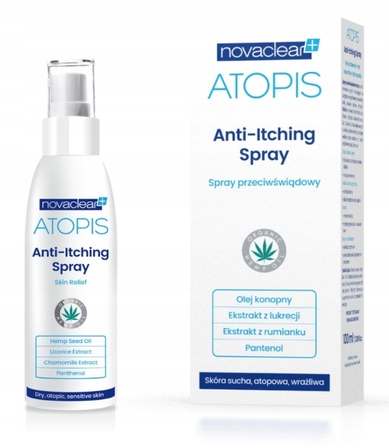 Спрей із заспокійливими та зволожуючими властивостями, особливо для сухої, чутливої, атопічної шкіри та шкіри, що свербить. Комплекс активних інгредієнтів, що міститься в делікатній формулі, усуває постійний свербіж, заспокоює подразнення та приносить миттєве полегшення. Додатково: екстракт кореня солодки відновлює природний захисний бар'єр епідермісу та зменшує почервоніння. Екстракт ромашки звичайної заспокоює подразнення, має антисептичні та протизапальні властивості. Пантенол інтенсивно зволожує та сприяє регенерації мікропошкоджень шкіри. Органічна конопляна олія заспокоює постійний свербіж і запобігає сухості шкіри та повторній появі сухості.