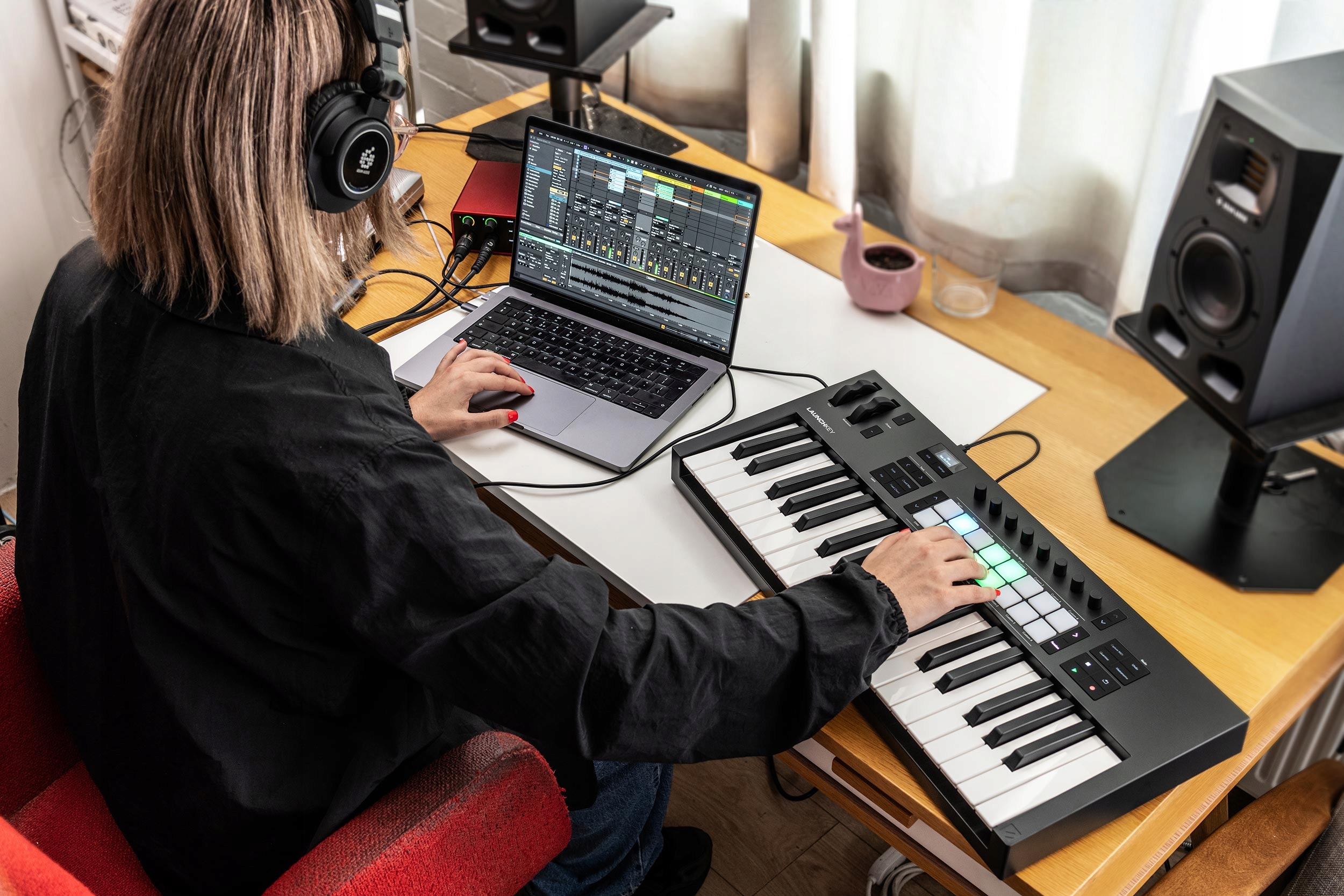 Launchkey 37 містить усе, що вам потрібно, щоб почати створювати музику відразу. Ableton Live 12 Lite, що входить до комплекту, дає вам можливість записувати та виконувати до восьми MIDI-або аудіодоріжок, а також набір інструментів, ефектів і творчих інструментів — усі вони чудово працюють із Launchkey. Ви також отримуєте вибір додаткових студійних ефектів і звуків від Novation і Focusrite.