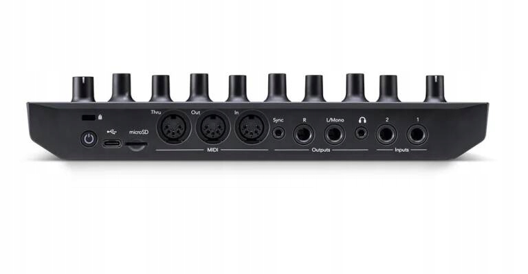 Підключіться до решти студії за допомогою повнорозмірних входів і виходів DIN MIDI та аналогового виходу синхронізації. Змішуйте та застосовуйте ефекти до вхідного сигналу через 2 аудіовходи TRS і слухайте через лінійний вихід або вихід для навушників.