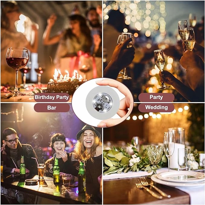 Набір із 10 світлодіодних підставок для пляшок і склянок.