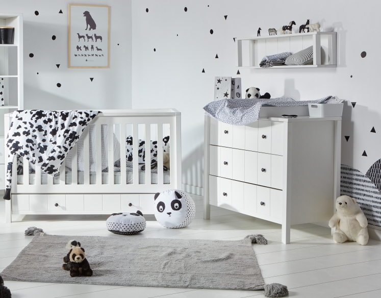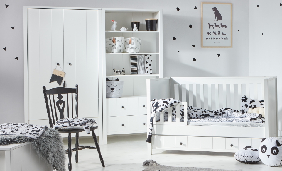 Мінімалістична колекція Allpin розбита чорними ручками. Для різноманітності є вертикальні фрези, що імітують дошки на фасадах. Поєднання класичного чорного і білого робить колекцію придатною як для кімнати хлопчика, так і для дівчинки, вона відповідатиме потребам малюка та очікуванням вимогливого підлітка.