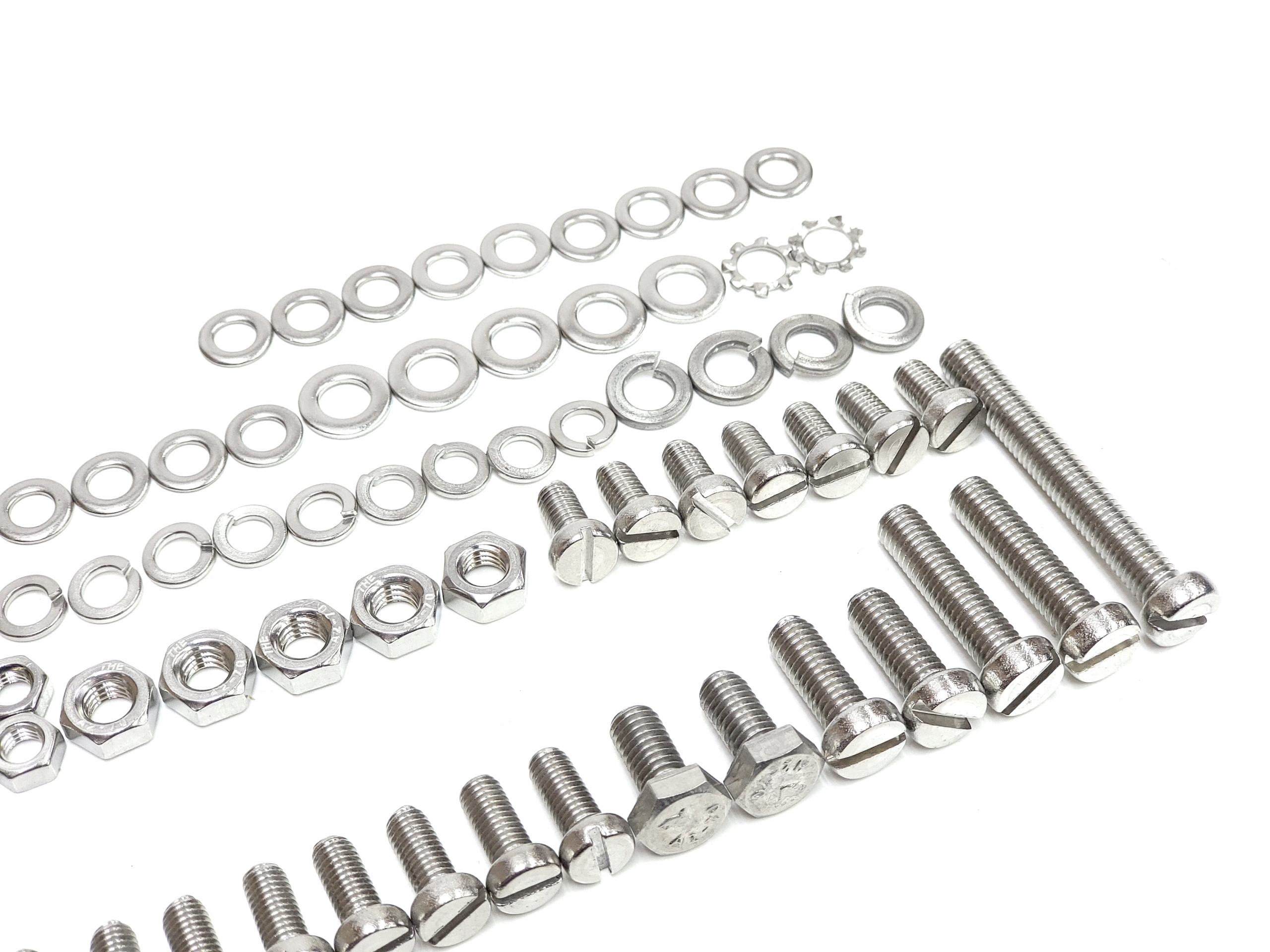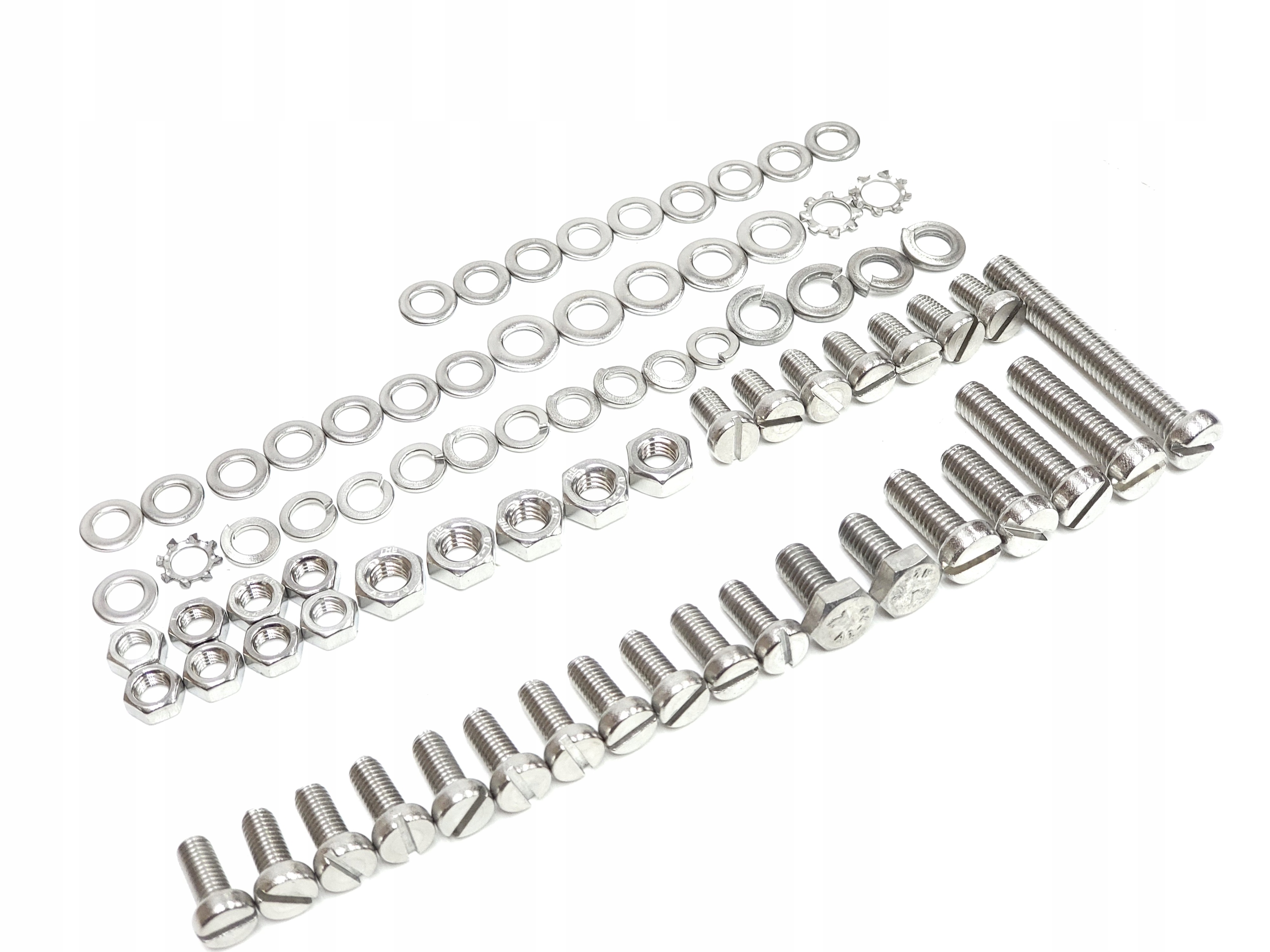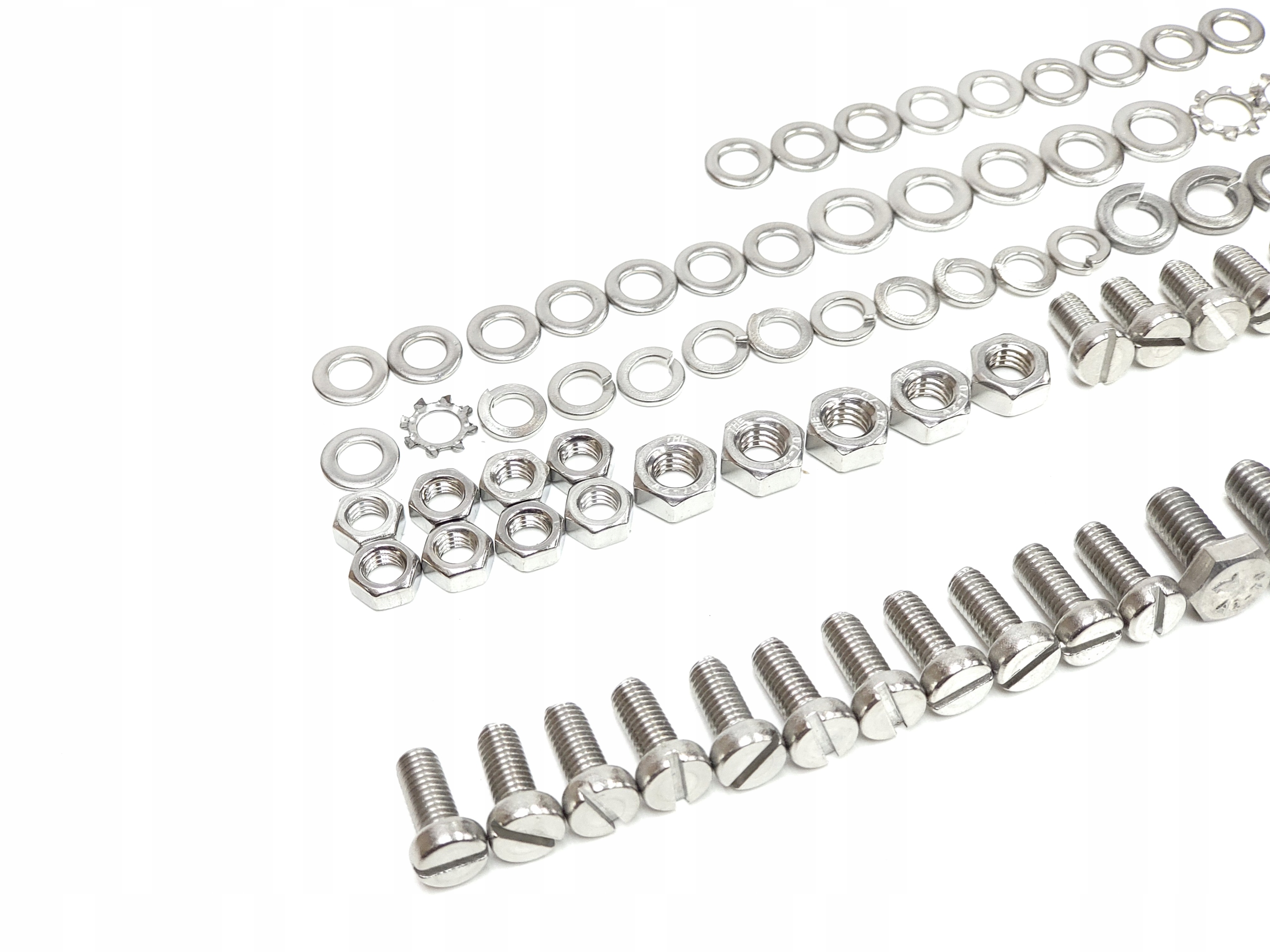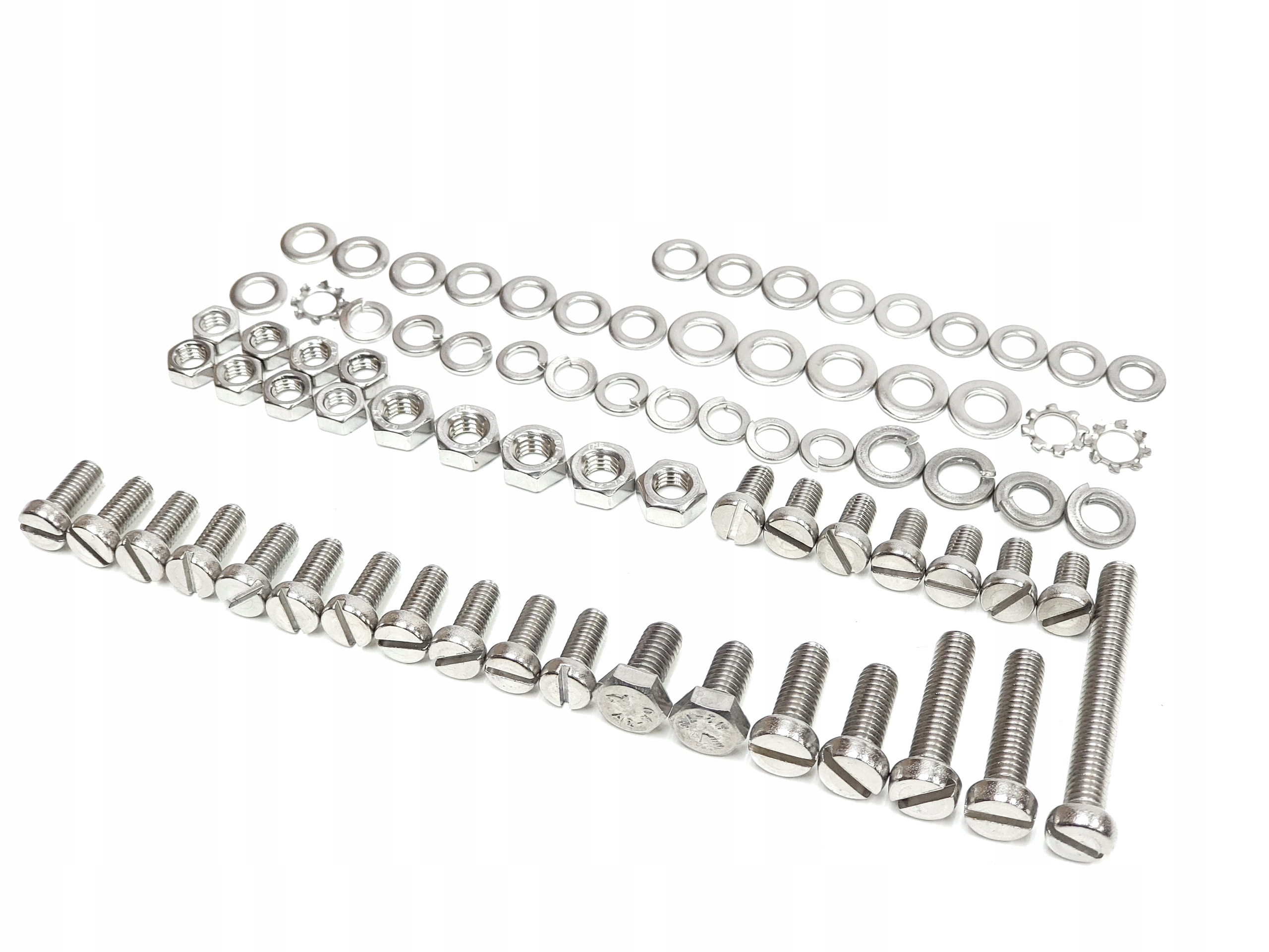 НОВИЙ великий набір гвинтів підходить для велосипедів Romet Wigry Jubilat Gil Agat Zenit Alka Wagant Gazela та майже до всіх моделей ZZR Romet Tyler Universal періоду ПНР, оскільки набір універсальний. У таблиці, що додається до упаковки, описано розташування гвинтів, гайок і шайб для найпопулярніших моделей, але їх можна успішно адаптувати до будь-якої моделі часів Польської Народної Республіки. Весь набір виготовлений з нержавіючої сталі, тому при його використанні немає побоювання корозії в майбутньому. В комплект входить: Шурупи передньої стійки, задньої стійки, переднього підкрилка, заднього підкрилка, кришки ланцюга, фіксатора торпеди, переднього ліхтаря, динамо, заднього ліхтаря.