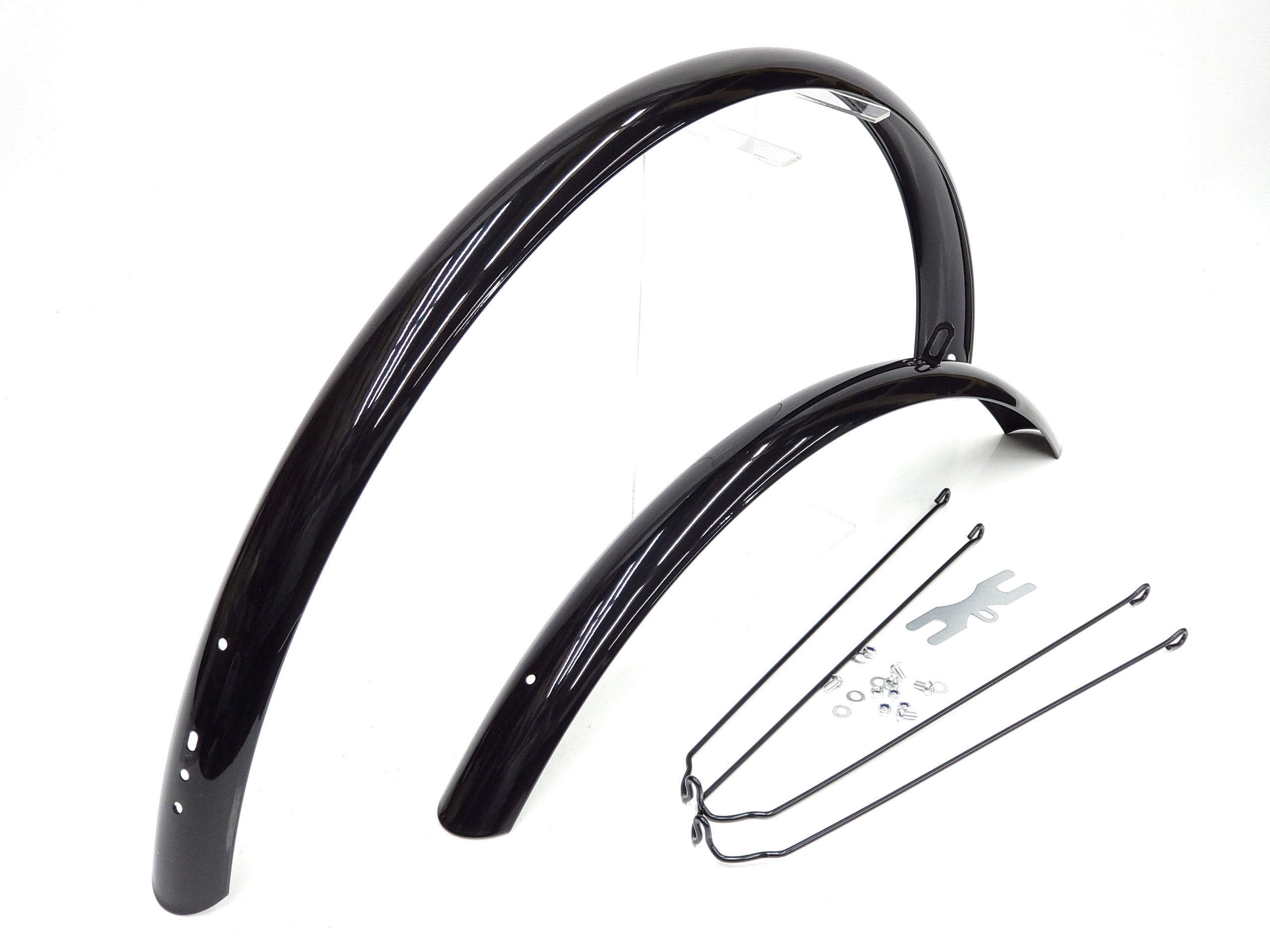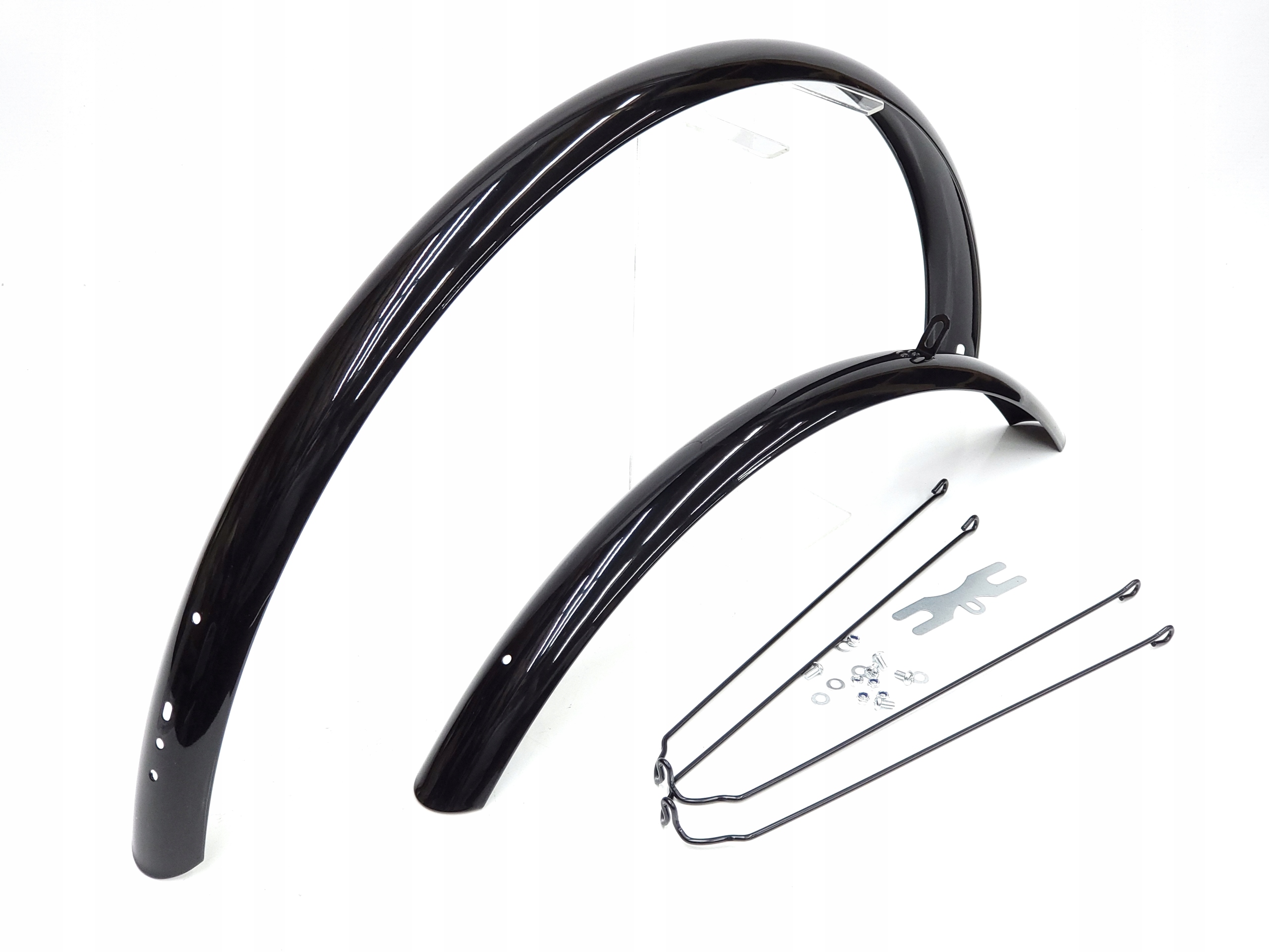НОВІ бризковики 27-28" для велосипедів Romet Orkan Kormoran Żuraw Albatros Universal Tyler та аналогічних моделей з ПНР. Набір за допомогою кронштейнів, закріплений на багажнику або гвинтах крила, можна встановити на вісь, злегка відігнувши вушко. Ширина крил: 45 мм.