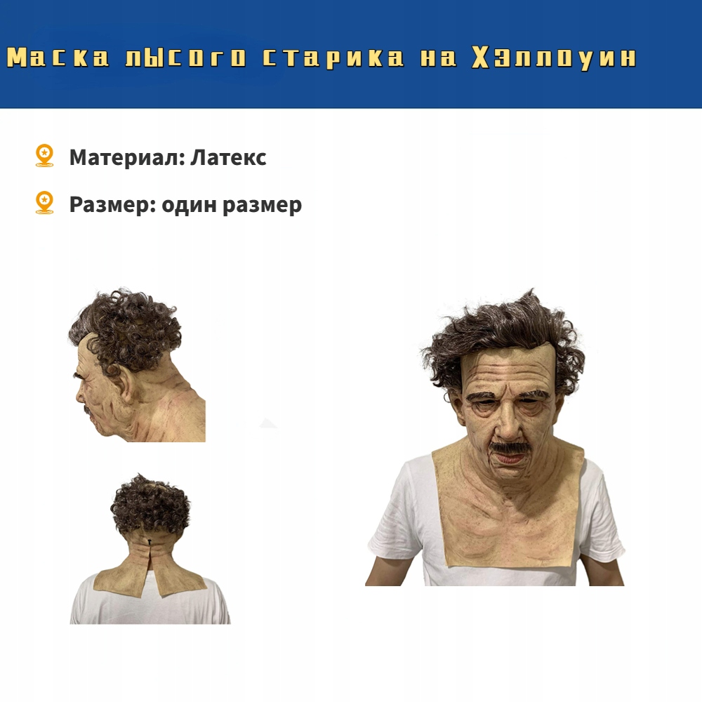 Хеллоуїн Латекс обличчя обкладинки старого чоловіка, маскуючи голову на маскарад реалістичний головний убір