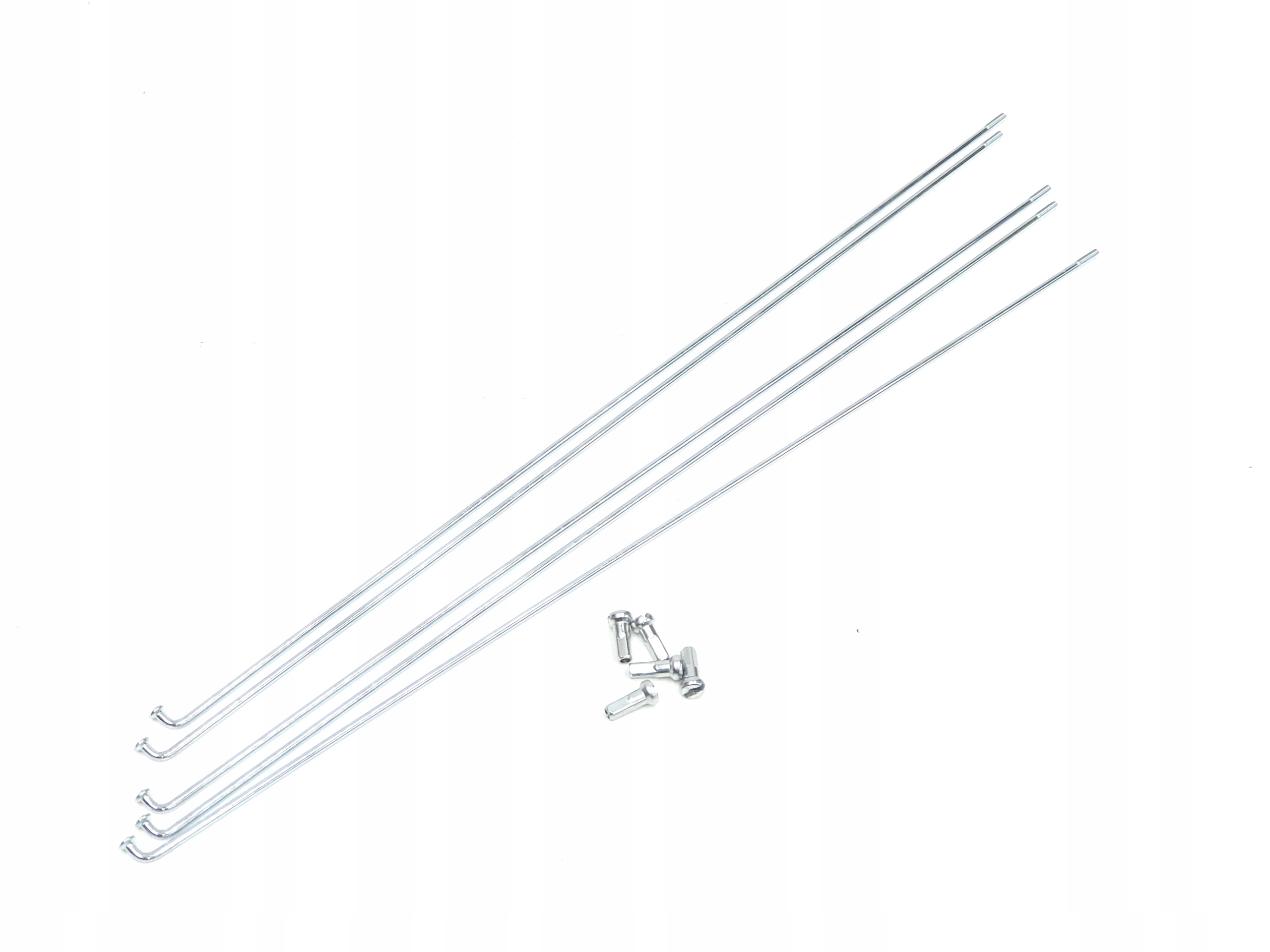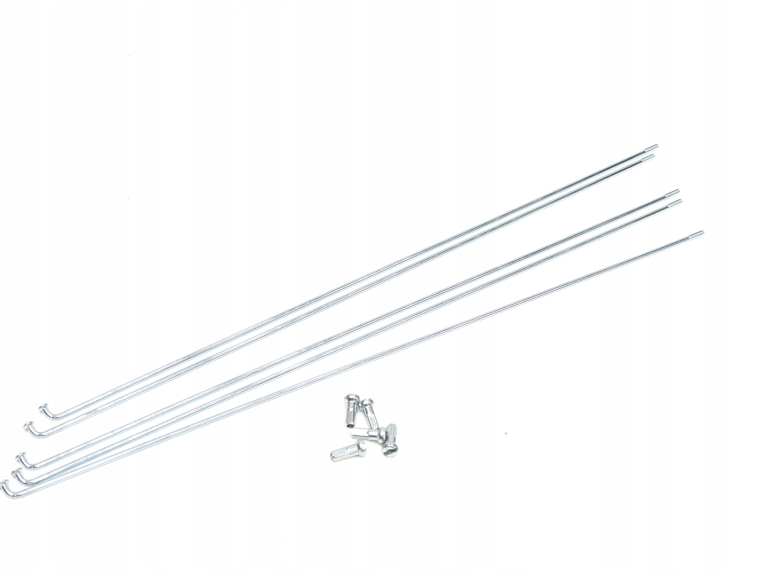 НОВИЙ Комплект спиць заднього колеса (27x1-1/4 дюймів) для велосипедів Romet Kometa Meteor, що відповідає круглому ободу, у випадку трапецієподібного обода (старішого типу), який не тестувався, він може не підходити або потрібно вкоротити спицю, щоб запобігти проколу камери. Набір підібрано відповідно до оригінальних розмірів Zakłady Rowerowe Romet, присвячених вищезгаданим велосипедам. У комплекті: 5 спиць і 5 ніпелів.