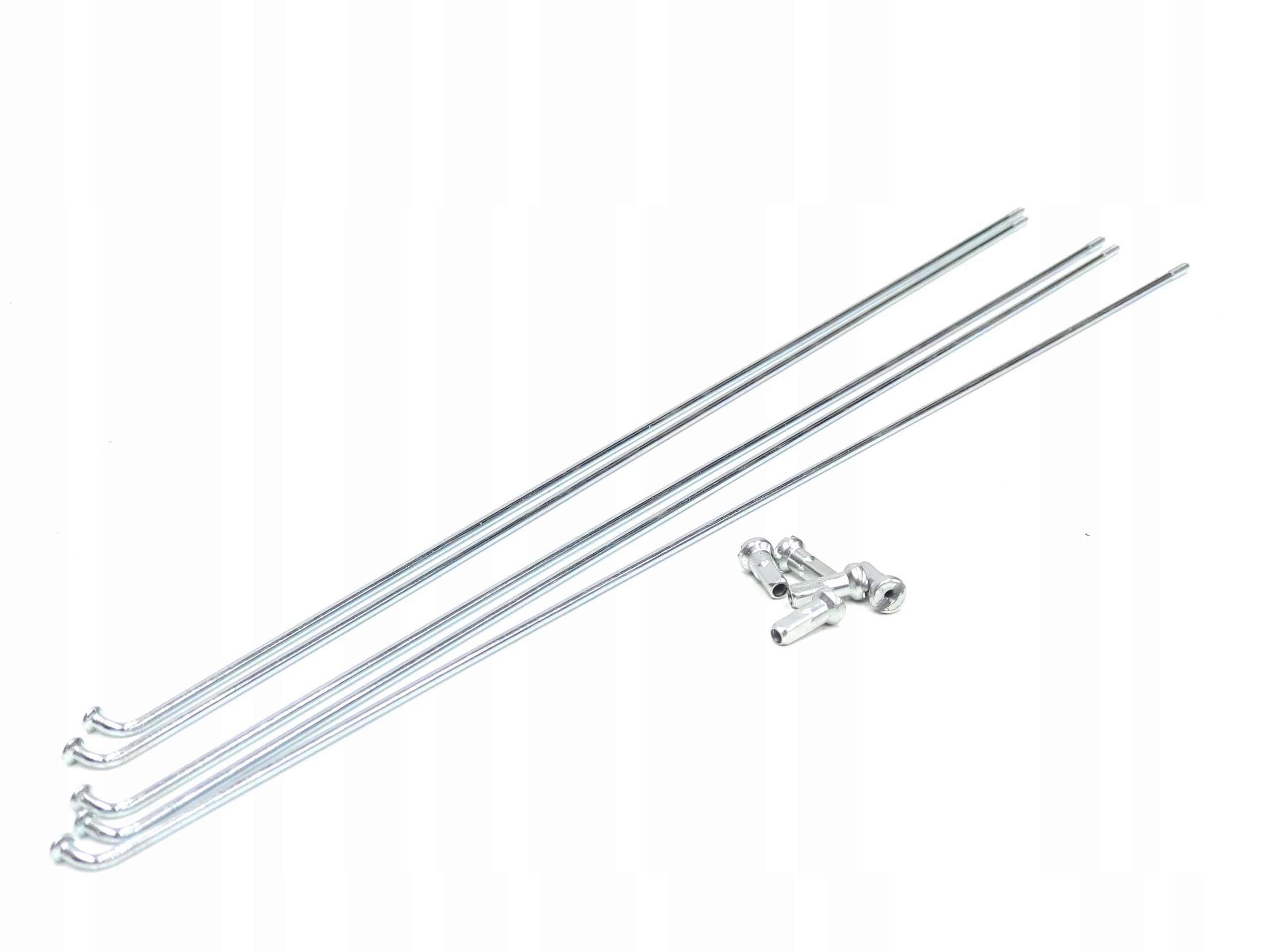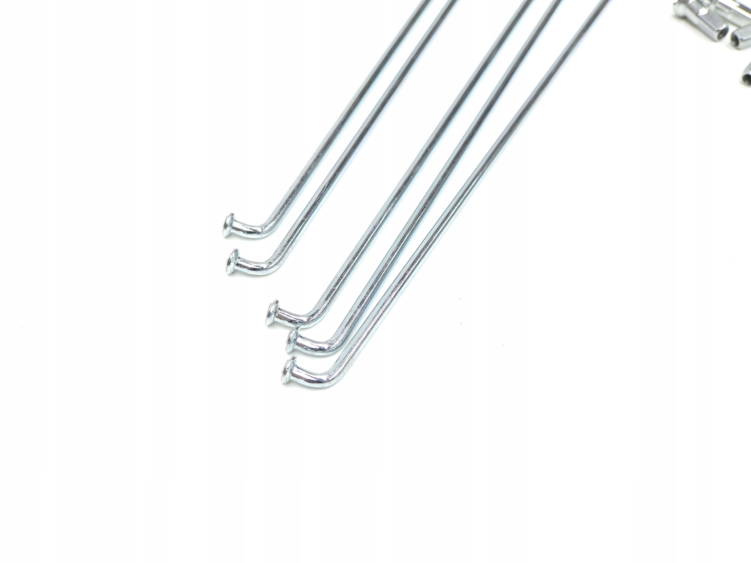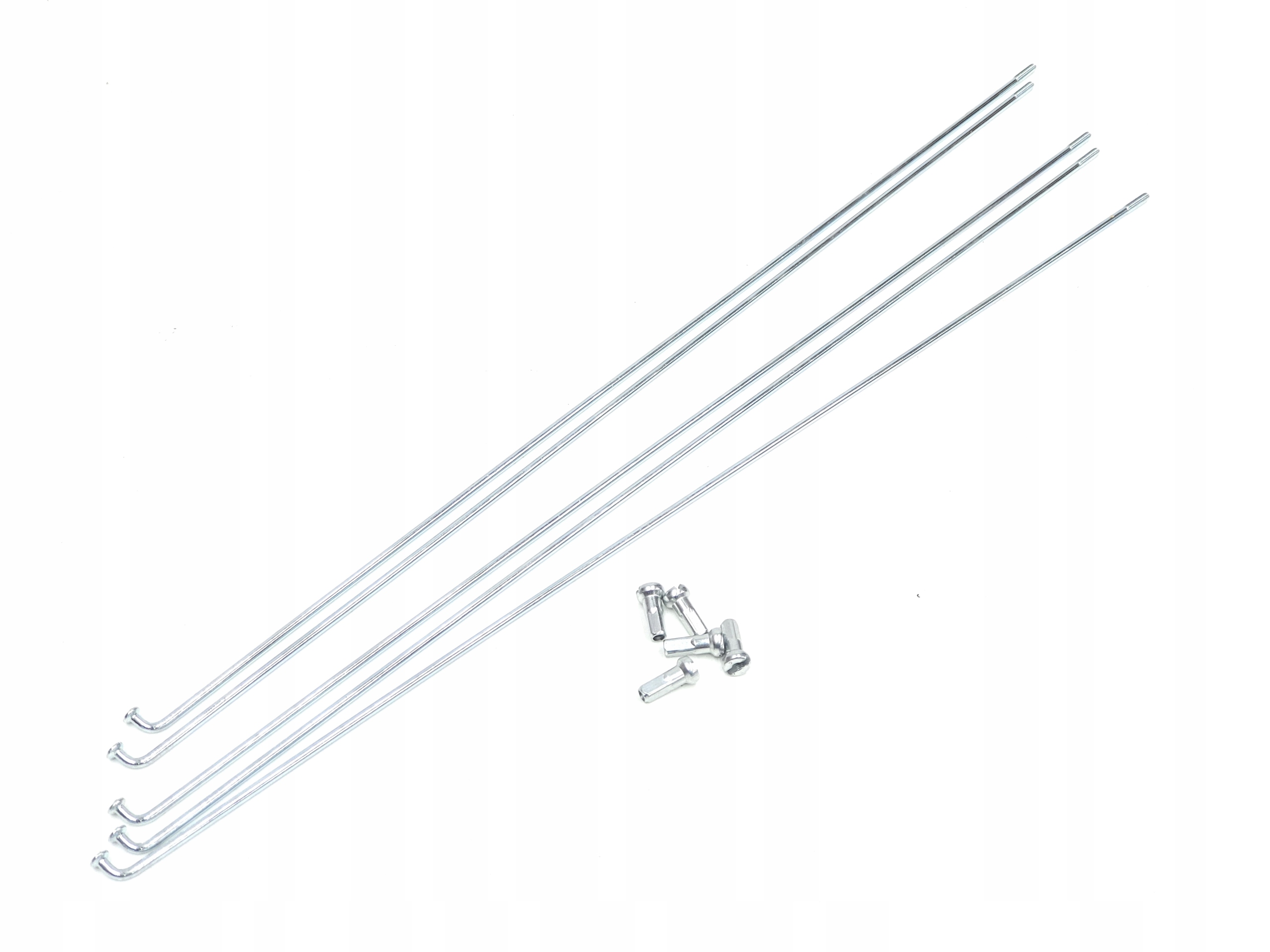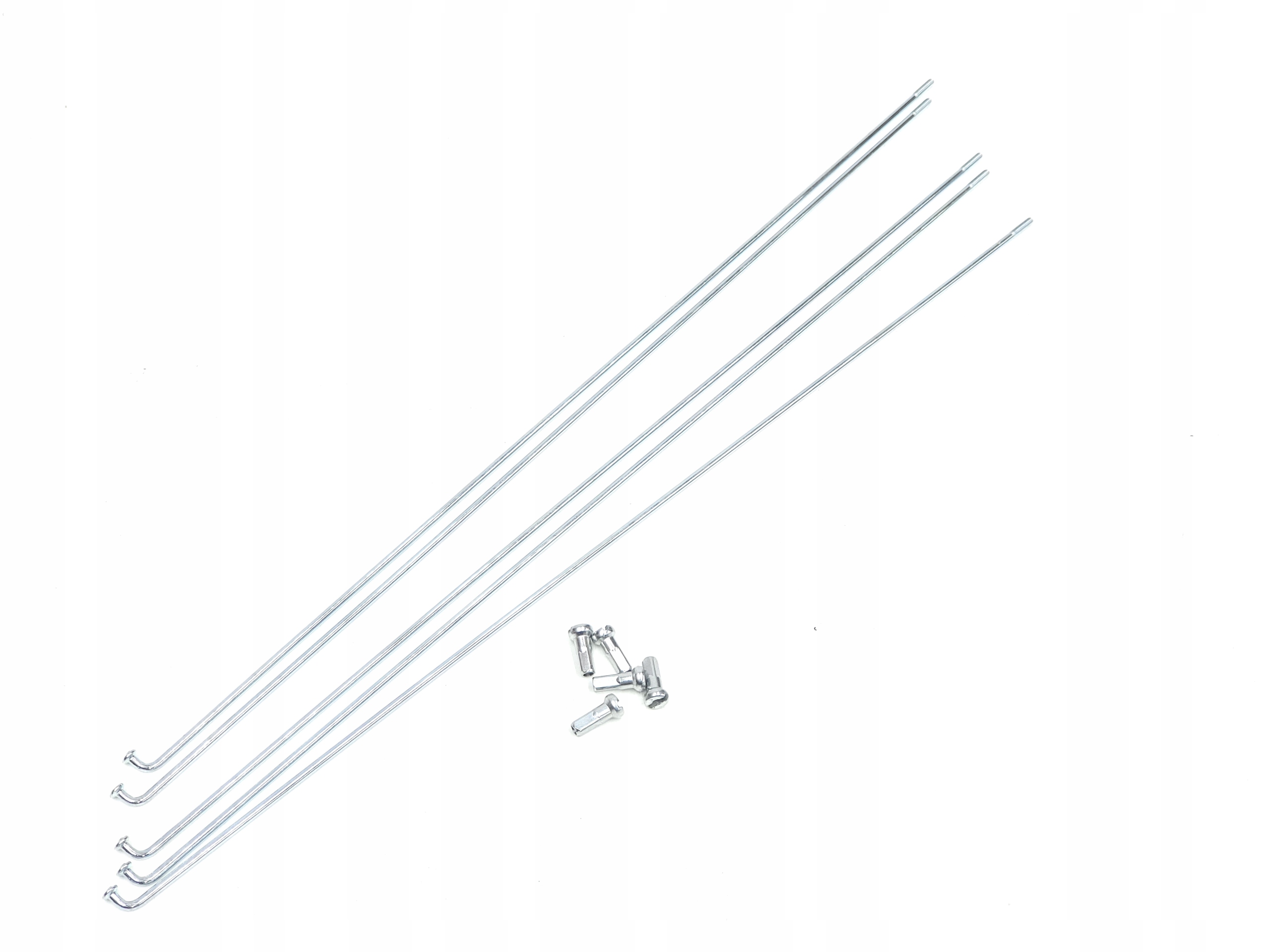 НОВИЙ Комплект спиць заднього колеса (27x1-1/4 дюймів) для велосипедів Romet Wagant Pasat, що відповідає круглому ободу, у випадку трапецієподібного обода (старішого типу), який не тестувався, він може не підходити або потрібно вкоротити спицю, щоб запобігти проколу камери. Набір підібрано відповідно до оригінальних розмірів Zakłady Rowerowe Romet, присвячених вищезгаданим велосипедам. У комплекті: 5 спиць і 5 ніпелів.