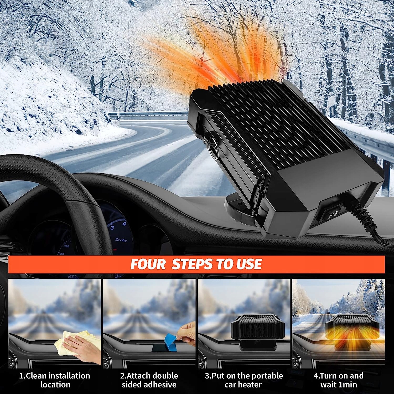 - Швидкий нагрів: вбудований нагрівальний кабель, великий вентиляційний отвір, 1,5 м штекер автомобільного прикурювача, швидко видаляють іній і туман на лобовому склі автомобіля. Портативний автомобільний обігрівач/запотівач із автоматичним захистом від перегріву/перегріву/зниження потужності/вимкнення звуку та іншими функціями.