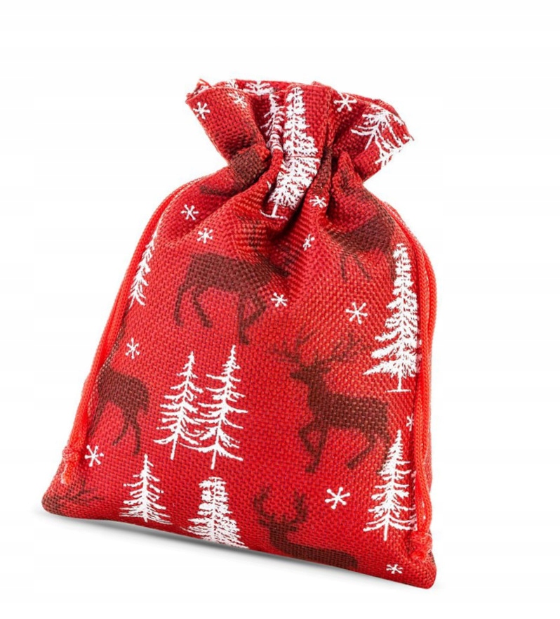 НОВИЧНА СУМКА ЧЕРВОНА "ОЛЕНЬ" ПОДАРУНОК ДЖУТОВА 26х35см ВЕЛ.