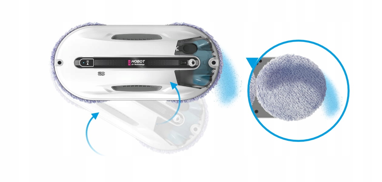 HOBOT R3 покриває очищену поверхню дуже ретельно та точно, використовуючи систему руху, яка забезпечує безслідне очищення. Пристрій не має вбудованих коліс або гусениць, тому не залишає смуг. Він рухається завдяки двом серветкам з мікрофібри, які не тільки очищають, але й відразу полірують поверхню. Робот автоматично підлаштовується під очищувану поверхню та її розмір. Підходить як для миття великих поверхонь до 5 м завширшки та 6 м заввишки, так і для менших – стандартних вікон.