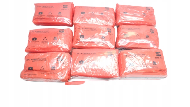 Все у водонепроникній упаковці. Внизу аптечки є липучки, що полегшує її кріплення до автомобіля.