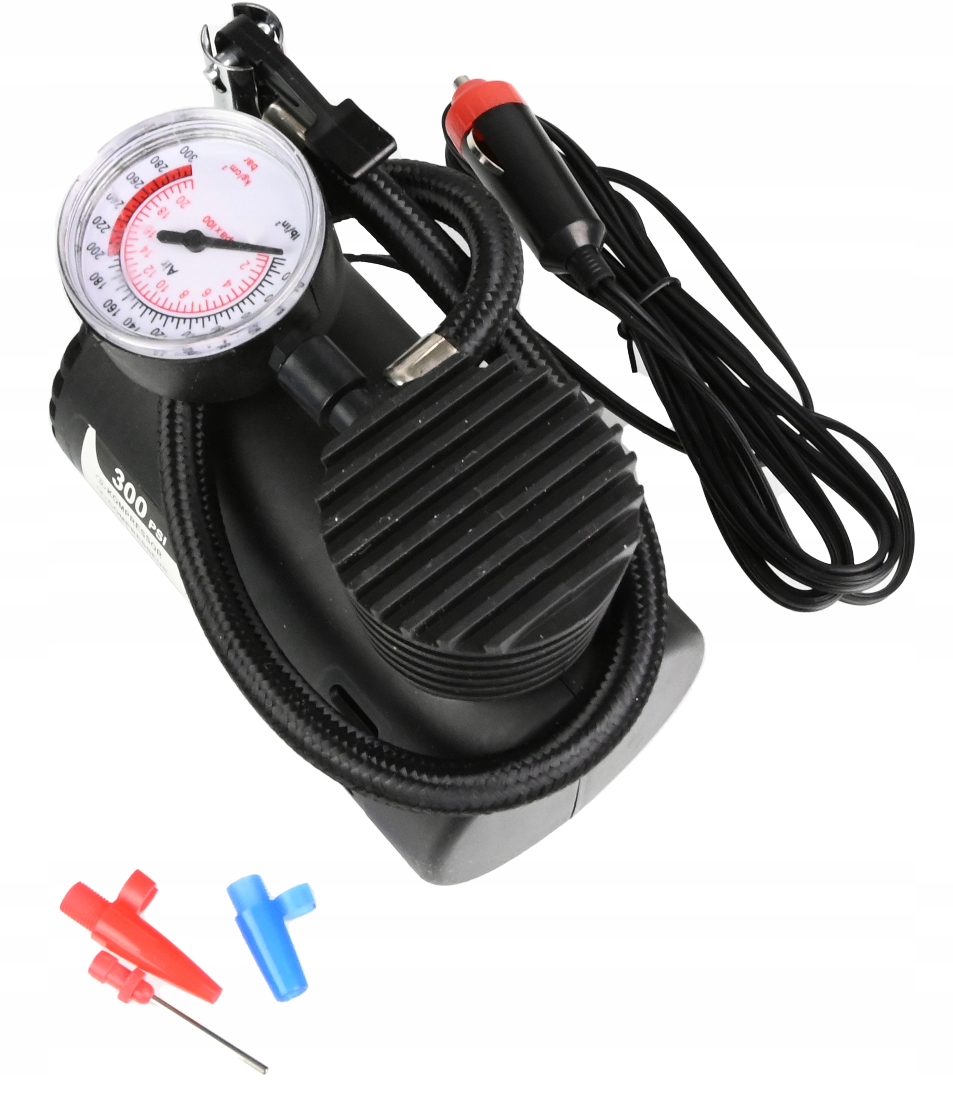 Набір включає, крім стандартного колеса автомобіля, 3 різні типи наконечників b> . На корпусі є манометр, який показує поточний тиск.