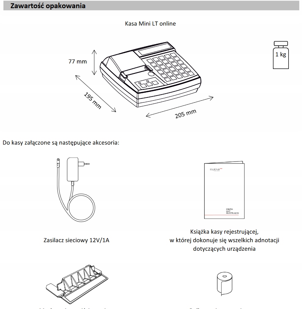 ELZAB Mini LT ONLINE базується на дизайні постійно популярного Апарат касовий серії ELZAB Mini з електронною копією. .