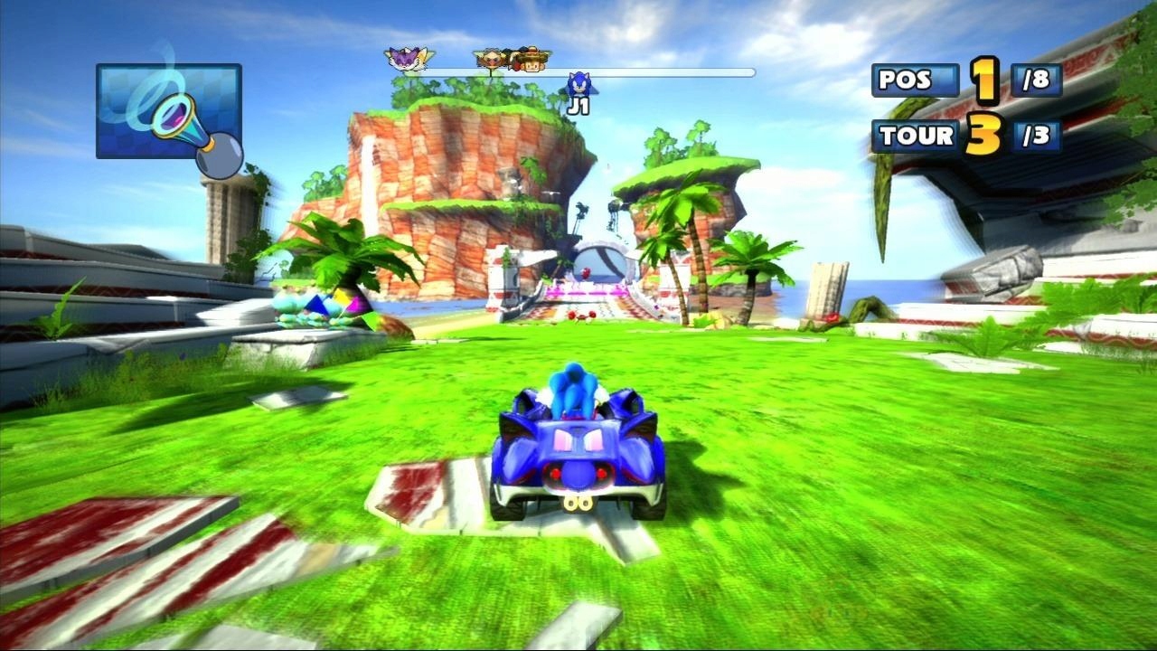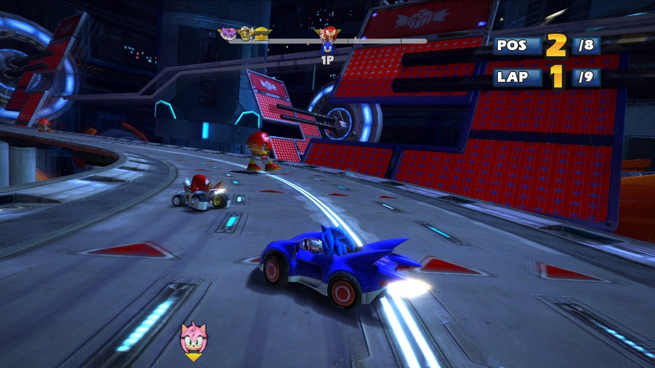 Характерний надзвуковий їжак садиться в автомобіль так само швидкий, як і він, і мчить барвистими трасами в компанії, зокрема, Тейлз, Аміго, мавпочка з Super Monkey Ball і доктор Еггман. Цікаво, що транспортні засоби не обмежуються лише транспортними засобами, які рухаються на колесах (автомобілі та мотоцикли) – наші диспетчери також приводять у рух літальні апарати. Звичайно, ми можемо покращити кожну з них, купуючи та виграючи нові, кращі частини.