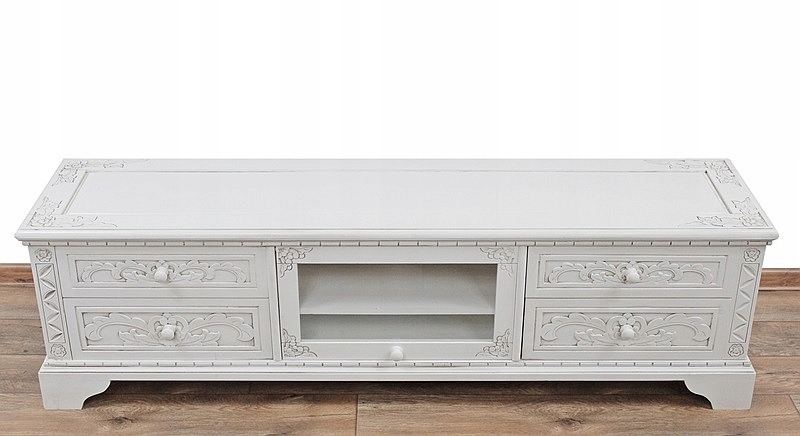 Красива різьблена шафа RTV! Він був зроблений з екзотичної деревини - похідного червоного дерева. Меблі дуже функціональні та практичні - у неї є чотири ящики та полиця для обладнання RTV. Виглядає чудово. : висота 45 см, довжина 160 см, глибина 40 см, розмір спаду до RTV: ширина 50, глибина 32 см, висота верхня 12 см, висота нижня 12 см