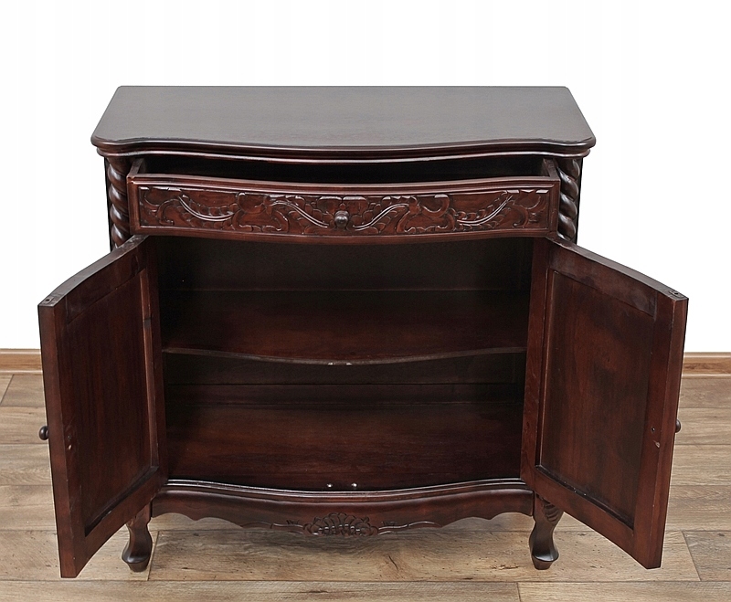 Чарівний дерев'яний предмет меблів із зігнутими ніжками та красивим різьбленням.