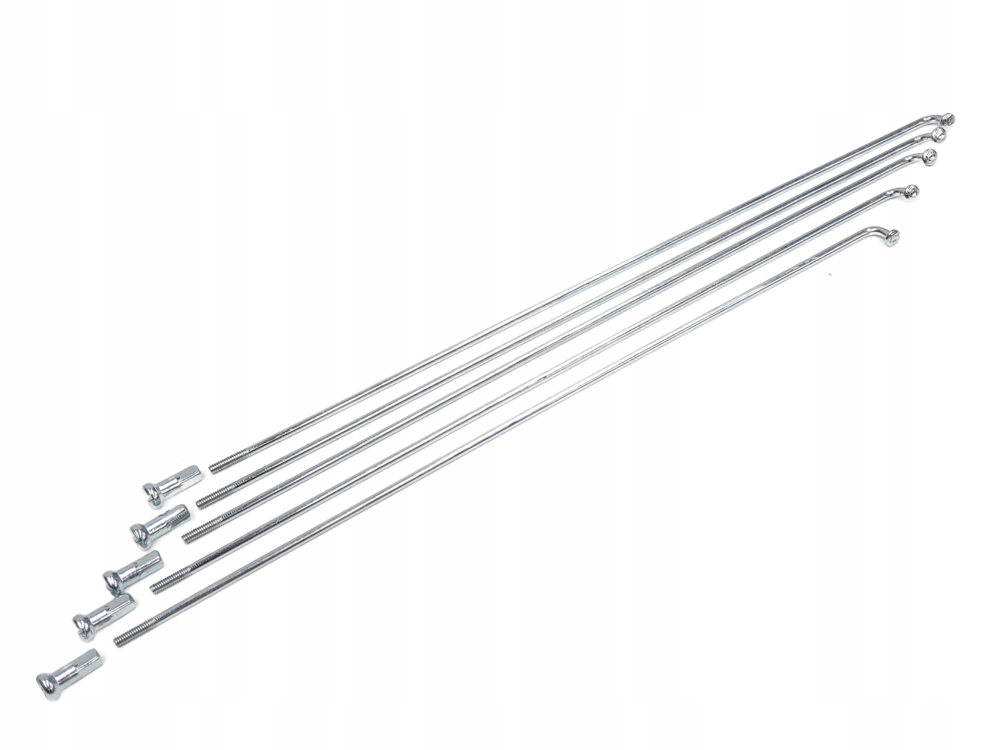 НОВИЙ комплект спиць заднього колеса (20 дюймів) для велосипедів Romet Czajka Flaming Duet Karlik Sokół, що відповідає круглому ободу - новіший тип, після 1980 року, у випадку трапецієподібного обода (старішого типу), який не перевірено, може не підходити або може знадобитися вкоротити спицю, щоб запобігти проколу камери. Набір підібрано відповідно до оригінальних розмірів Zakłady Rowerowe Romet, присвячених вищезгаданим велосипедам. У комплекті: 5 спиць і 5 ніпелів.