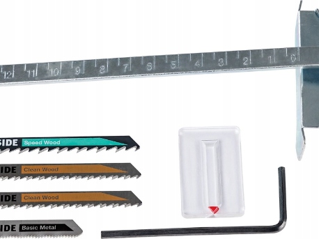 - аксесуари, що входять до набору: 3 леза для різання деревини (швейцарського виробництва), 1 диск для різання металу (швейцарського виробництва), 1 паралельний упор, 1 гайковий ключ із торцевим шестигранником, 1 перехідний елемент (для всмоктувальний порт) довжина кабелю: 3 м