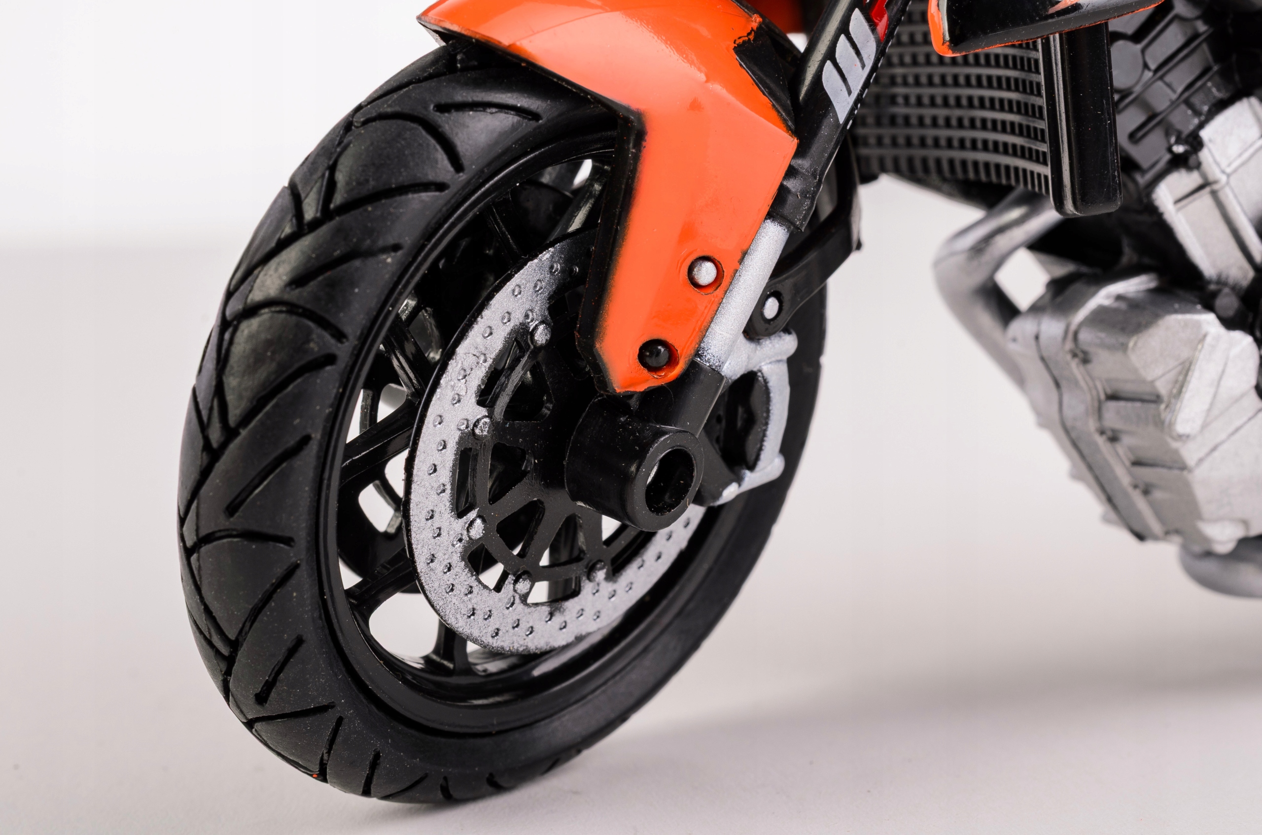 Мотоцикл у масштабі 1:12 із металевим корпусом і пластиковими деталями. Модель з рухомими колесами та поворотним кермом.