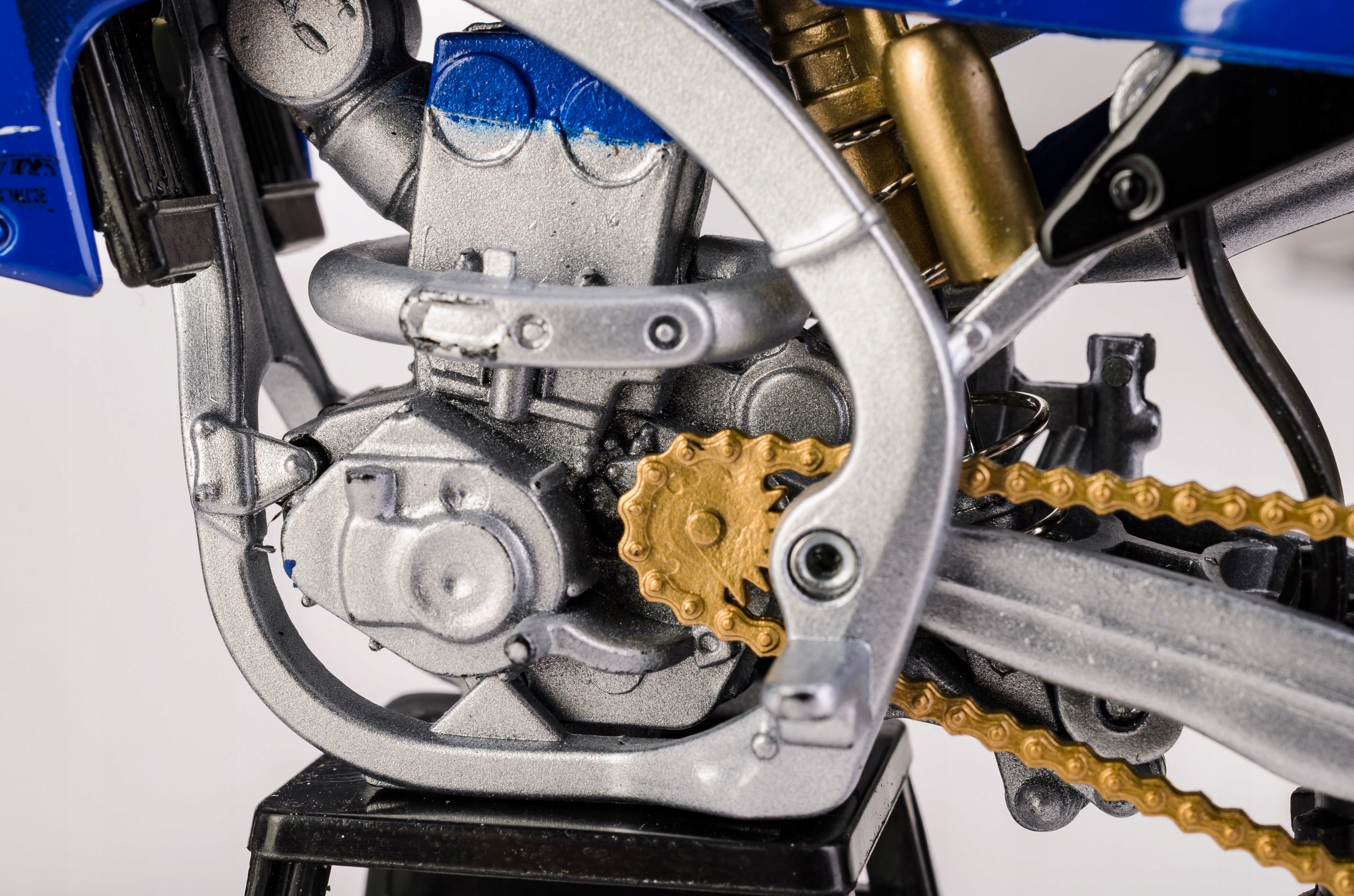 Мотоцикл у масштабі 1:12 із металевим корпусом і пластиковими деталями. Модель з рухомими колесами і поворотним кермом. У комплект входить підставка для демонстрації мотоцикла.