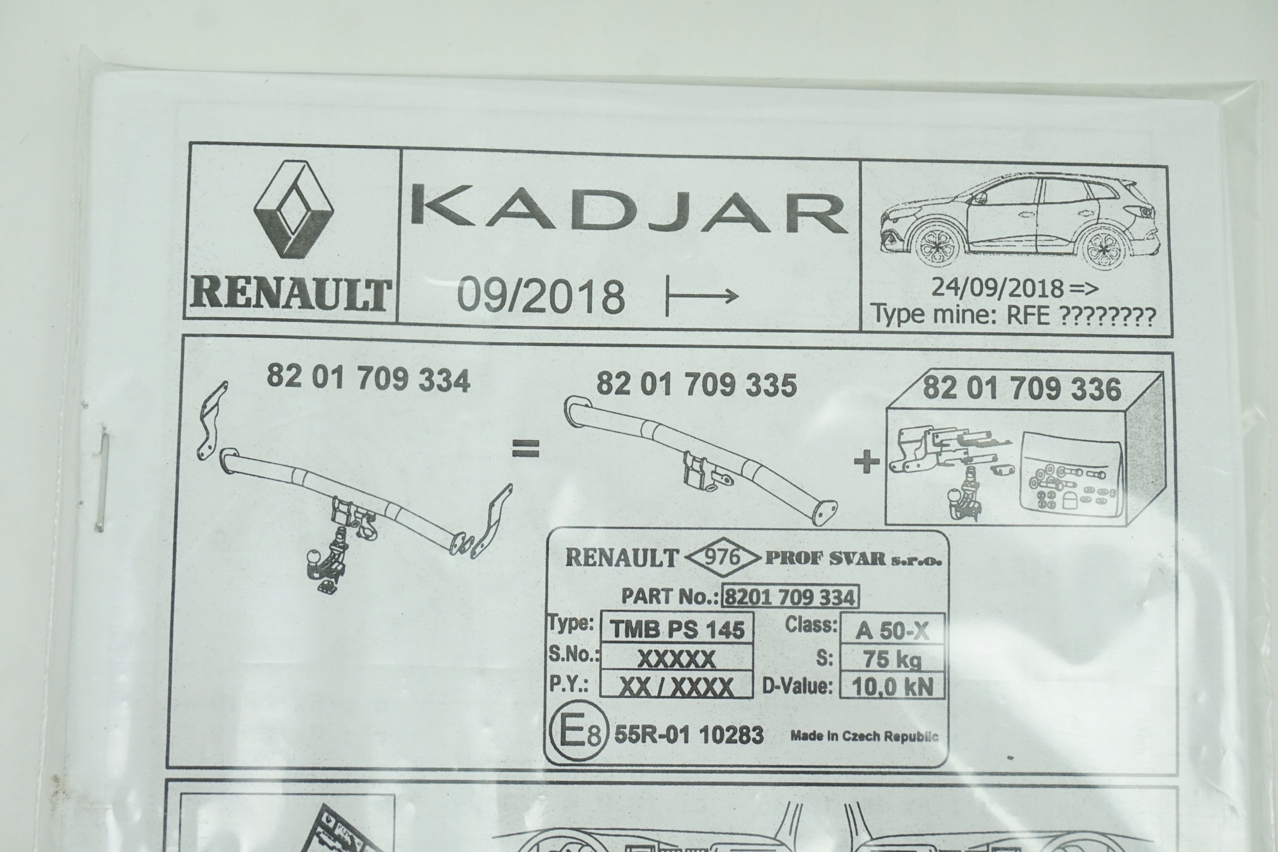 Новий, оригінальний буксирний шар із кріпильними елементами, призначеними для Renault Kadjar.
