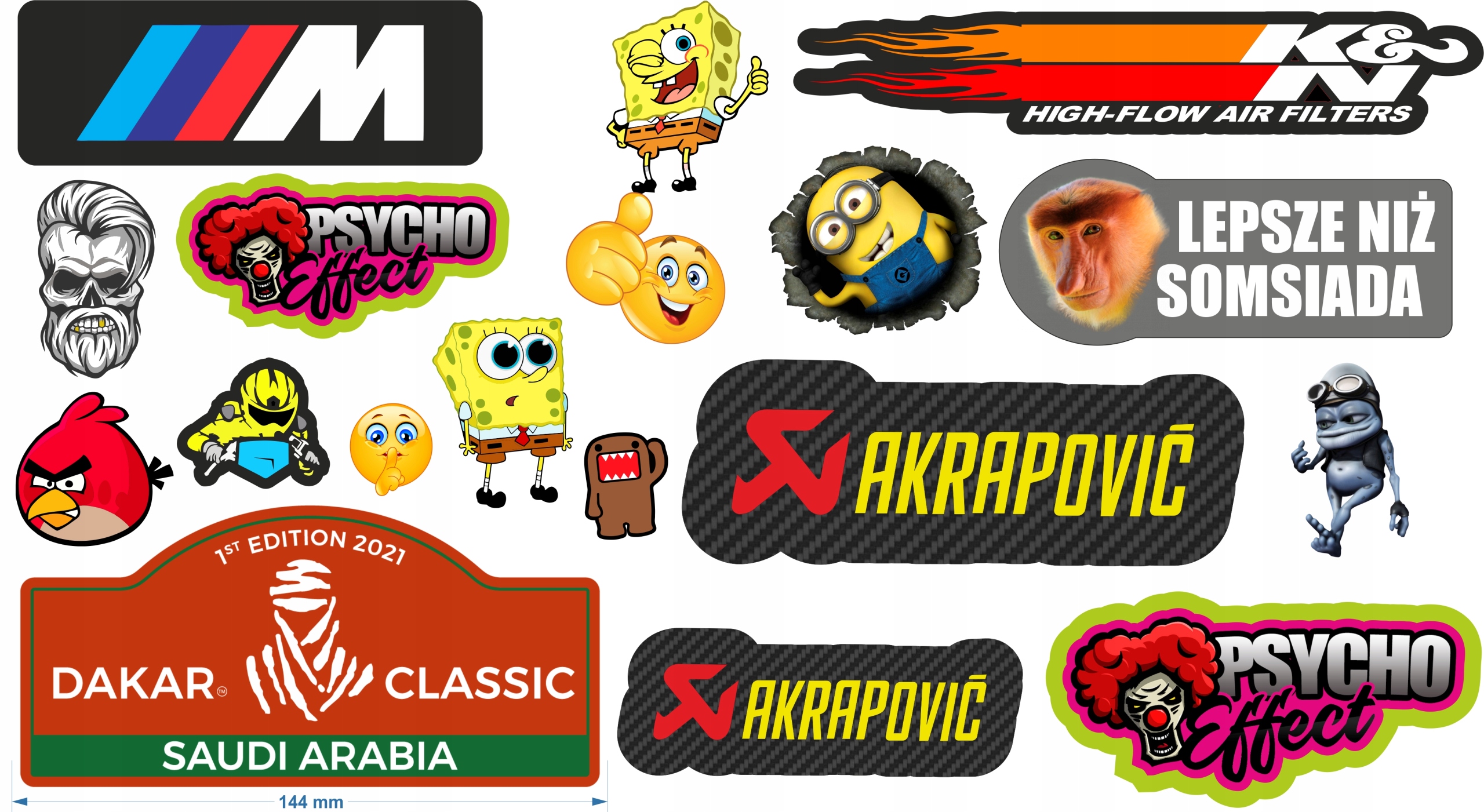 Набір складається з великої кількості наклейок, виготовлених з матеріалів ORACAL найвищої якості, стійких до атмосферних умов, що гарантує повне задоволення клієнтів. Наклейки друкуються дуже якісними фарбами на білій глянцевій фользі, всі вирізані по контуру!