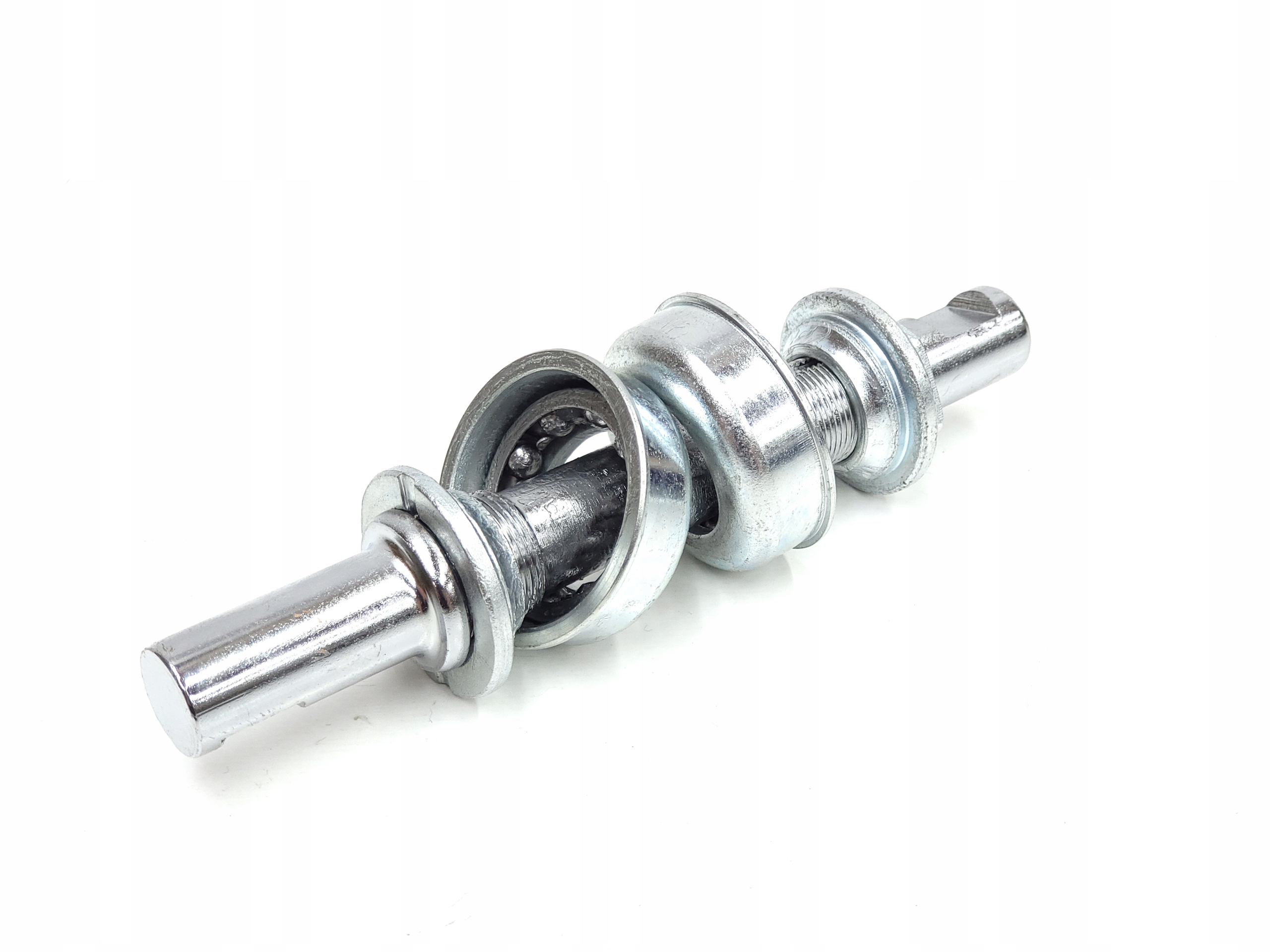 Пропонуємо НОВИЙ кронштейн для велосипедів Romet Wigry Jubilat Pelikan Turing Orion Tyler Universal та аналогічних моделей з ПНР. Повний комплект: вісь, комплект гайок, підшипники, чаші, що вставляються в раму. Розміри вказані на останніх фото.