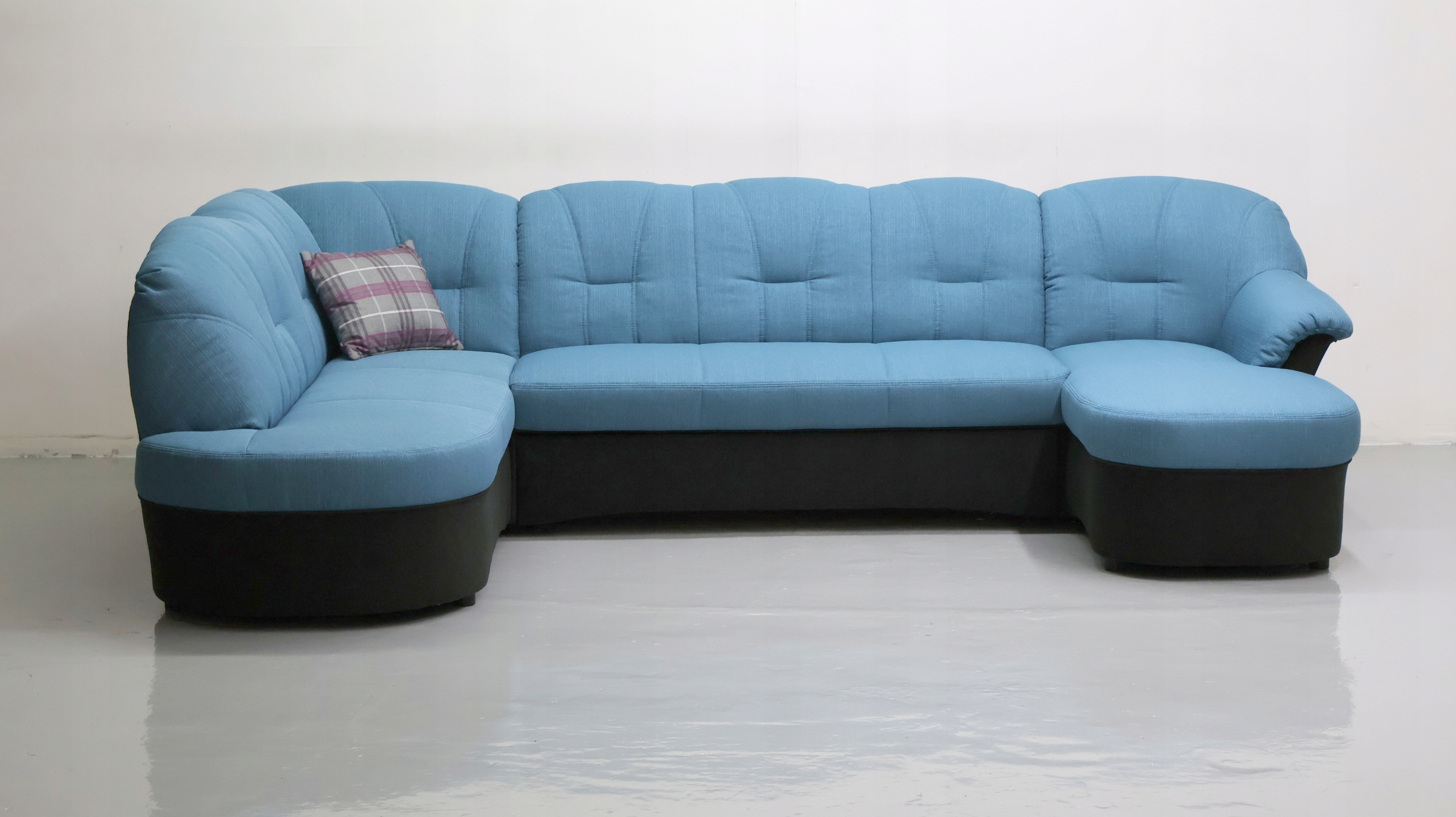 відпочинок є абсолютно новим з функцією сну з високоякісної конструкційної тканини Portland 85 з середнім плетінням та тканинами мікрофей. Сидіння та спинка - бірюза, виготовлена з структурної тканини, а решта - з чорної мікрофази. . Меблі стоїть на темних ногах