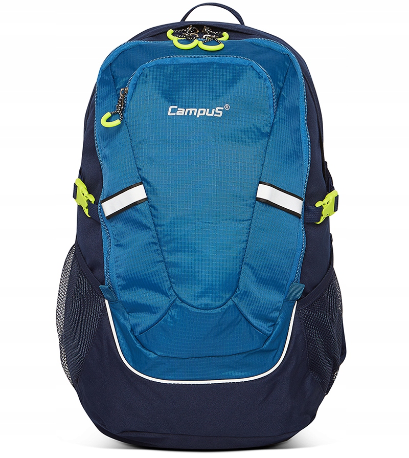 Якісний трекінговий рюкзак - city - school HORTON 2 by CAMPUS об'ємом 30 л. , виготовлений із міцного та легкого матеріалу ENDURA POLYESTER-RIPSTOP. Ідеально підходить для школи, поїздок і повсякденного використання. Він призначений для вимогливих користувачів, які цінують комфорт і практичні рішення. Рюкзак має два просторих відділення та передню кишеню з практичним органайзером та застібкою для ключів, усі застібаються на блискавку. Збоку рюкзака є сітчасті кишені, призначені для носіння, наприклад, пляшки з водою. Крім того, рюкзак має ручку для перенесення, регульовані плечові лямки з набивкою та компресійні лямки. Світловідбиваючі елементи, розміщені спереду та на плечових лямках рюкзака, забезпечують кращу видимість користувача та, отже, більшу безпеку. Максимальний комфорт використання забезпечує система перенесення AIR FLOW разом із системою вентиляції спини ACS. Дві спеціально сконструйовані подушки, що проходять уздовж хребта, з’єднані сіткою, створюючи тунель, що забезпечує циркуляцію повітря та охолодження спини. Система лямок дозволяє регулювати нахил рюкзака відносно тіла в залежності від умов використання. Система джгутів і подушок, а також ергономічний стегновий ремінь забезпечують рівномірний розподіл ваги і захищають хребет і м'язи шиї від тиску. Використання високоякісного матеріалу ENDURA POLYESTER-RIPSTOP гарантує захист від механічних пошкоджень і захищає від складних погодних умов.